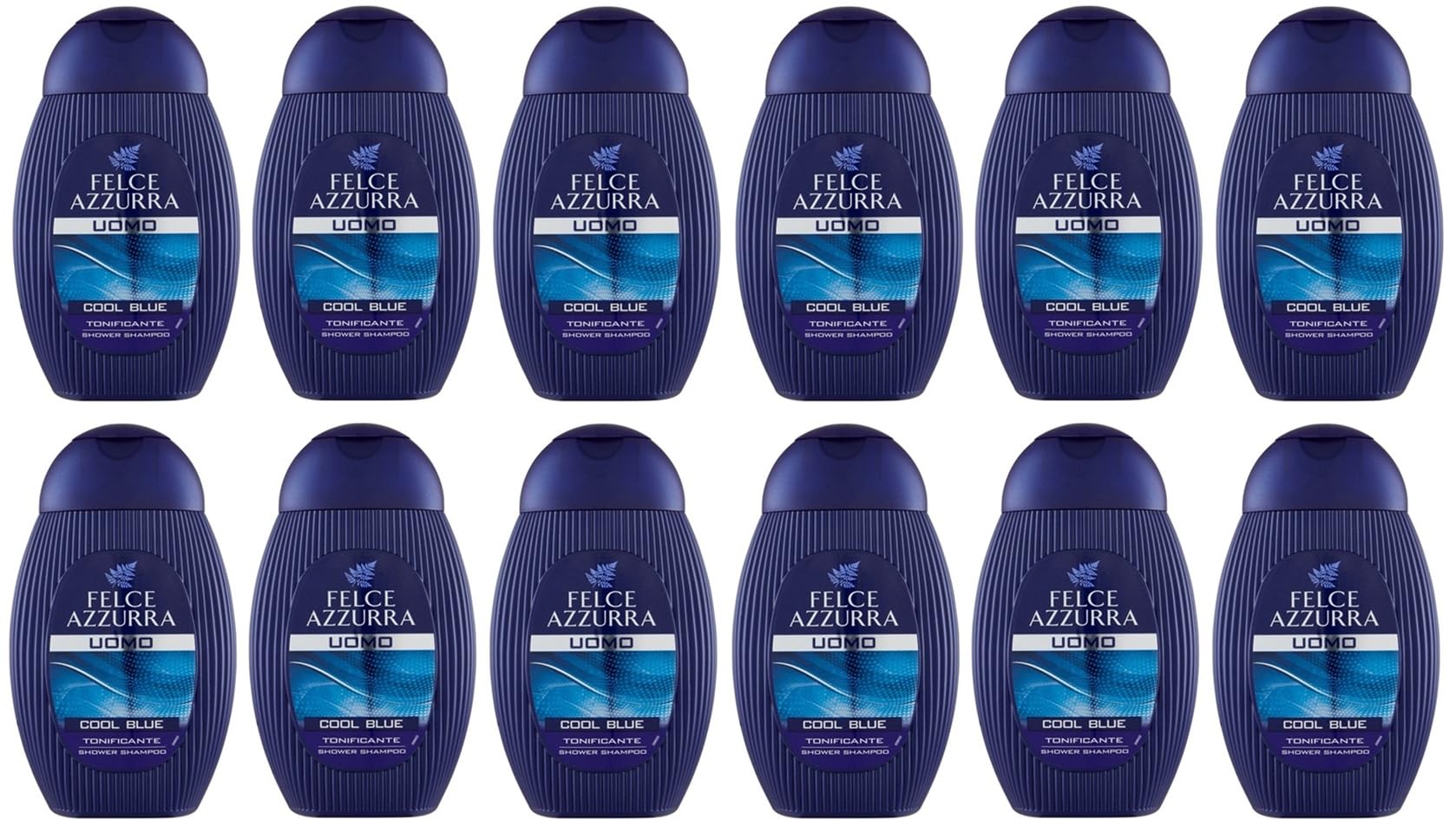 12x Felce Azzurra Doccia Shampoo Uomo Cool Blue Tonificante Shower Shampoo 250ml