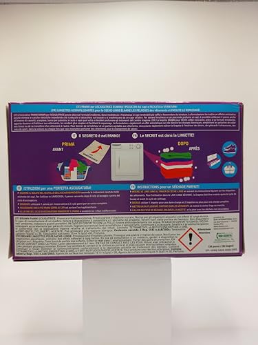 - FORMULA: Formula emolliente con ammorbidente per donare morbidezza e freschezza ai capi, favorendone la stiratura. Panni studiati per impedire che la lanugine si attacchi ai tessuti o si trasferisca da un capo all’altro all’interno del cestello