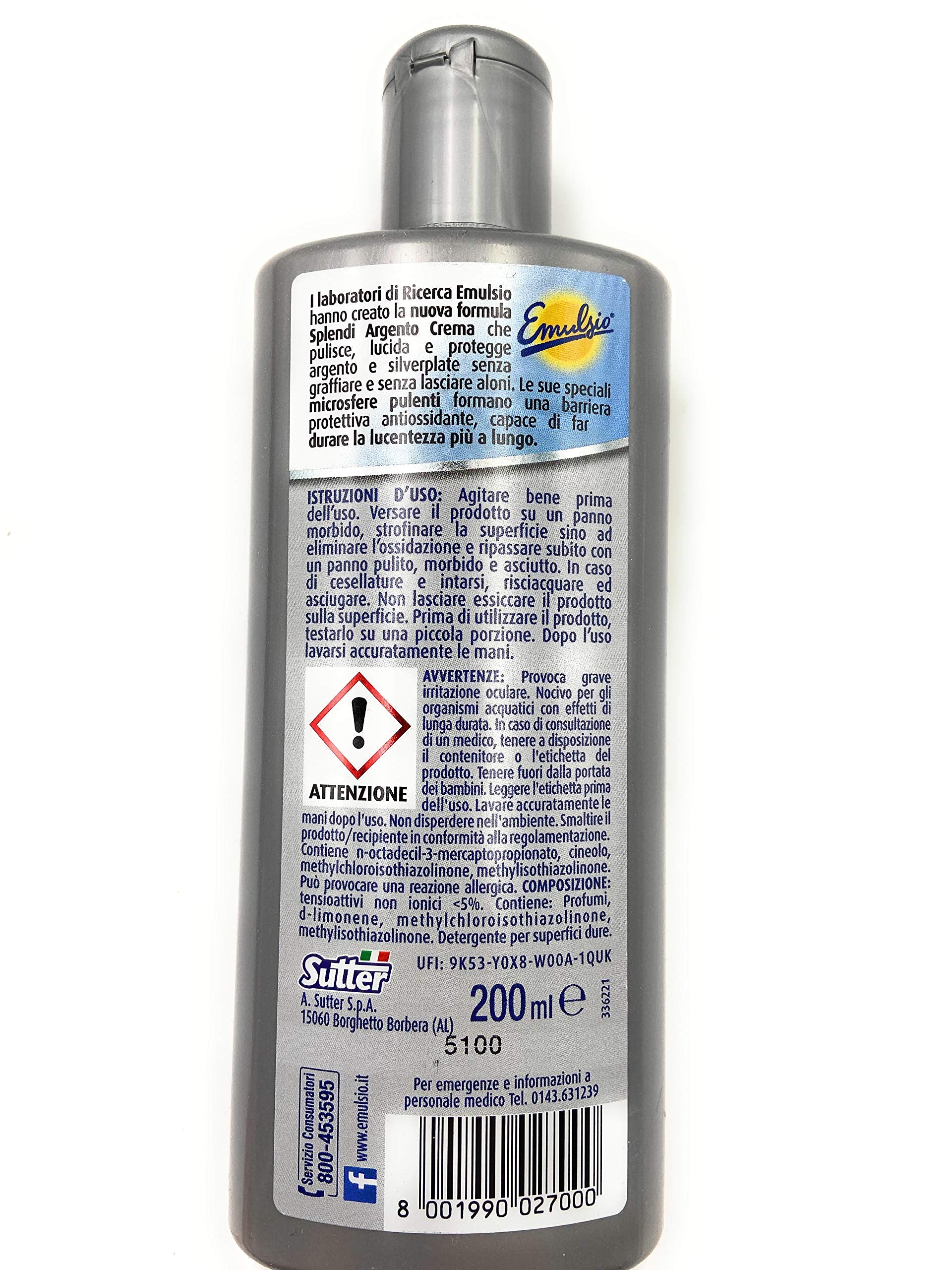 - flaconi da 200 ml di crema lucidante protettiva Emulsio Splendi Argento