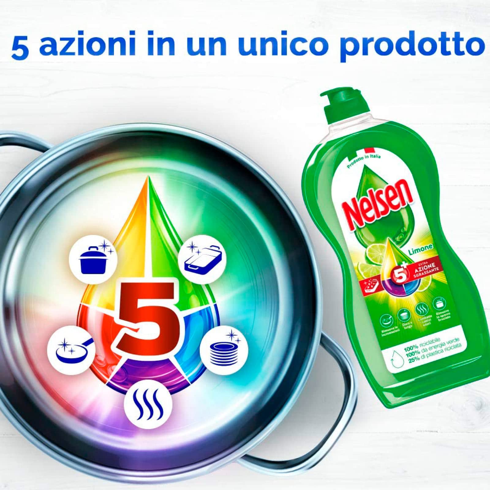 3x Nelsen Detersivo Liquido Sgrassante Profumo di Limone Sapone per Piatti 5 Azioni - Flacone da 900ml