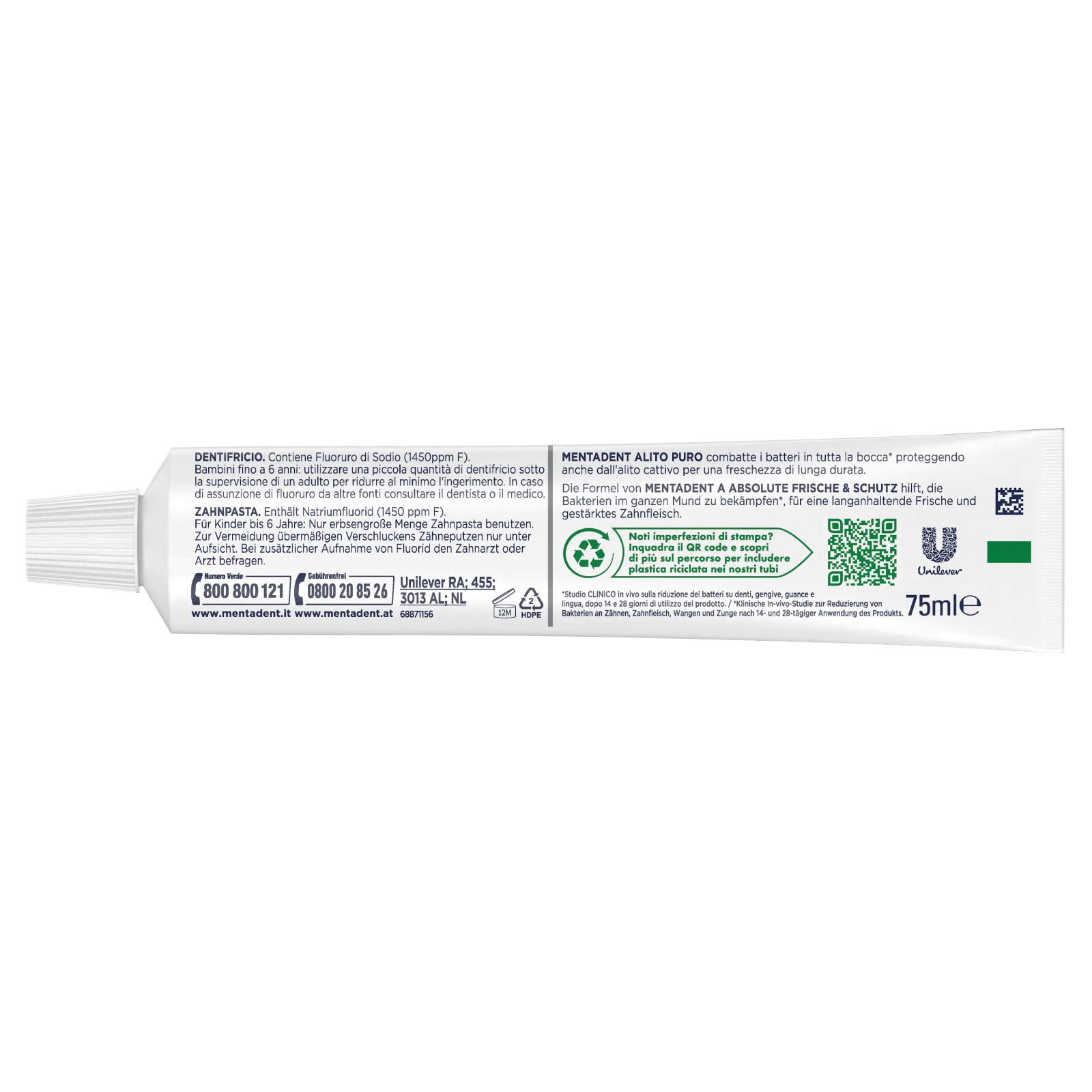 4x Mentadent Alito Puro Dentifricio con Microcapsule Purificanti - 4 Flaconi da 75 ml ognuno