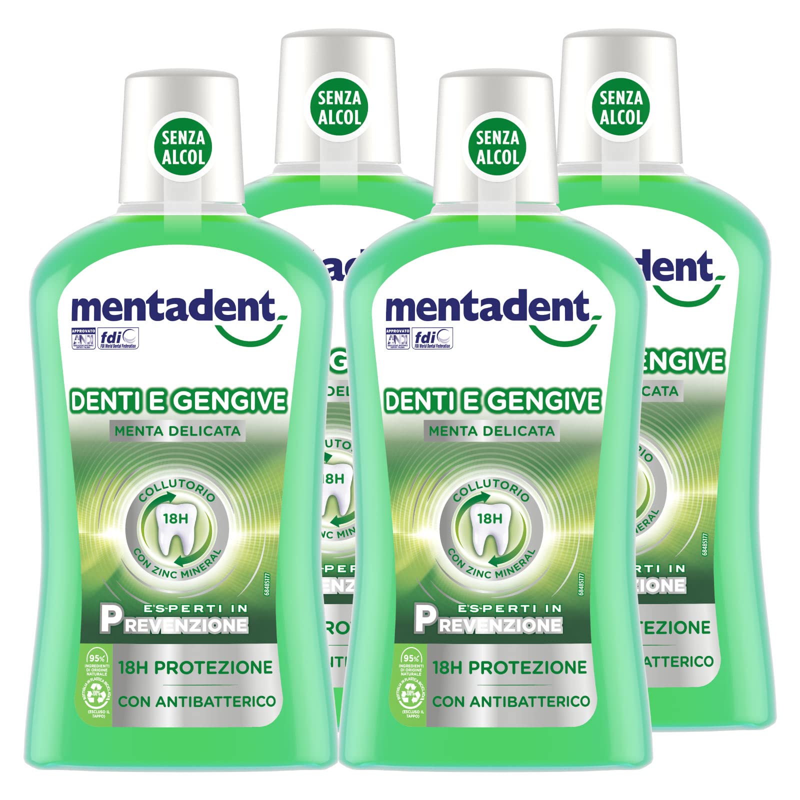 4x Mentadent Collutorio Denti e Gengive Zero Alcol Con Antibatterico - 4 Flaconi da 500 ml ognuno