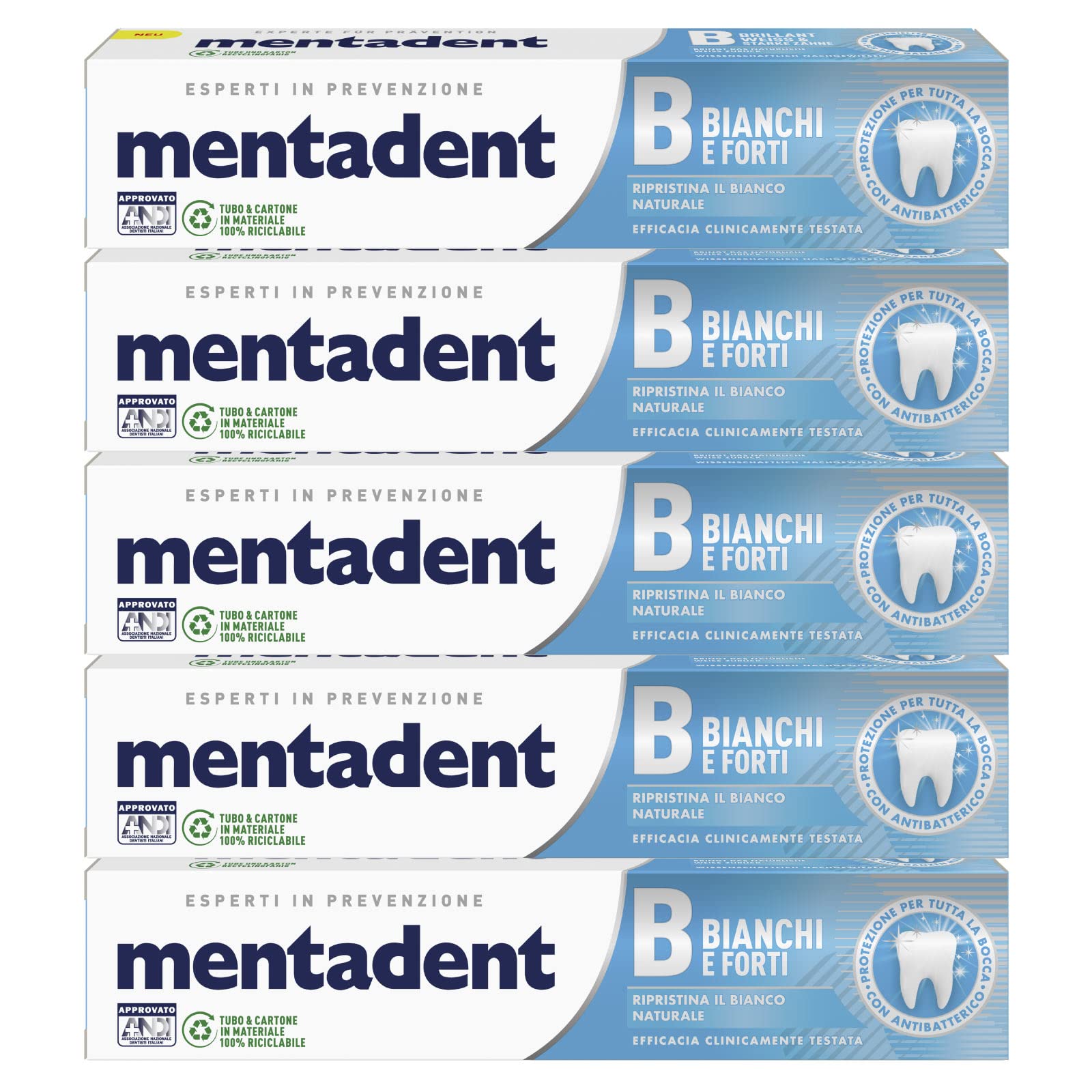 5x Mentadent Bianchi e Forti Dentifricio Antibatterico - 5 Flaconi da 75 ml ognuno