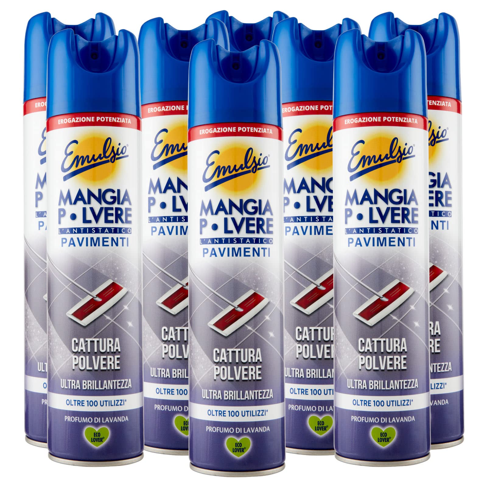 8x Emulsio Mangia Polvere L'antistatico Pavimenti Cattura Polvere e Ultra Brillantezza alla Lavanda - 8 Flaconi Spray da 300ml ognuno