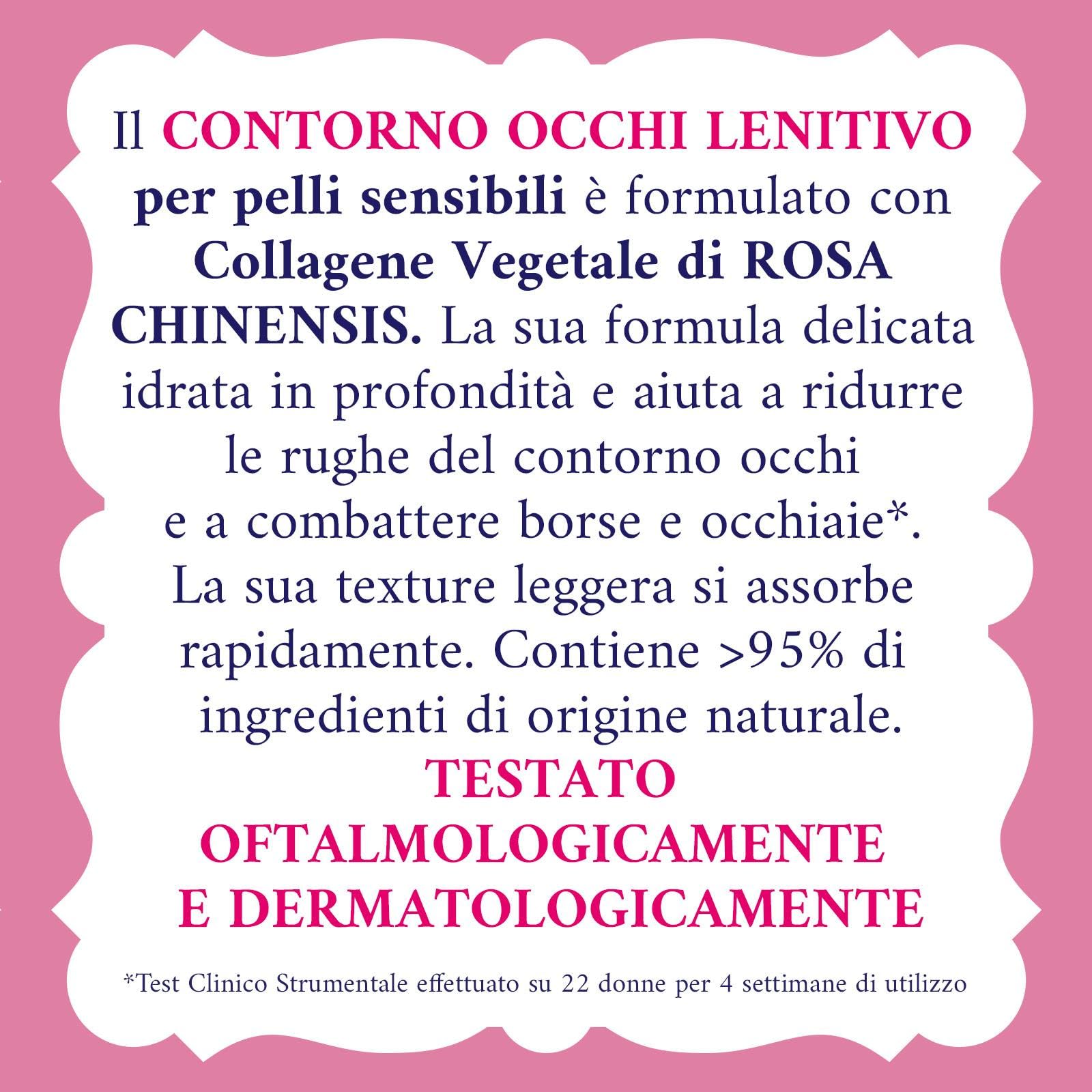 Acqua alle Rose, Contorno Occhi Antirughe Lenitivo, Crema Occhi Antirughe, Antiborse e Antiocchiaie - Con Collagene Vegetale di Rosa Chinensis, Ideale per Pelli Sensibili o Secche - 15 ml