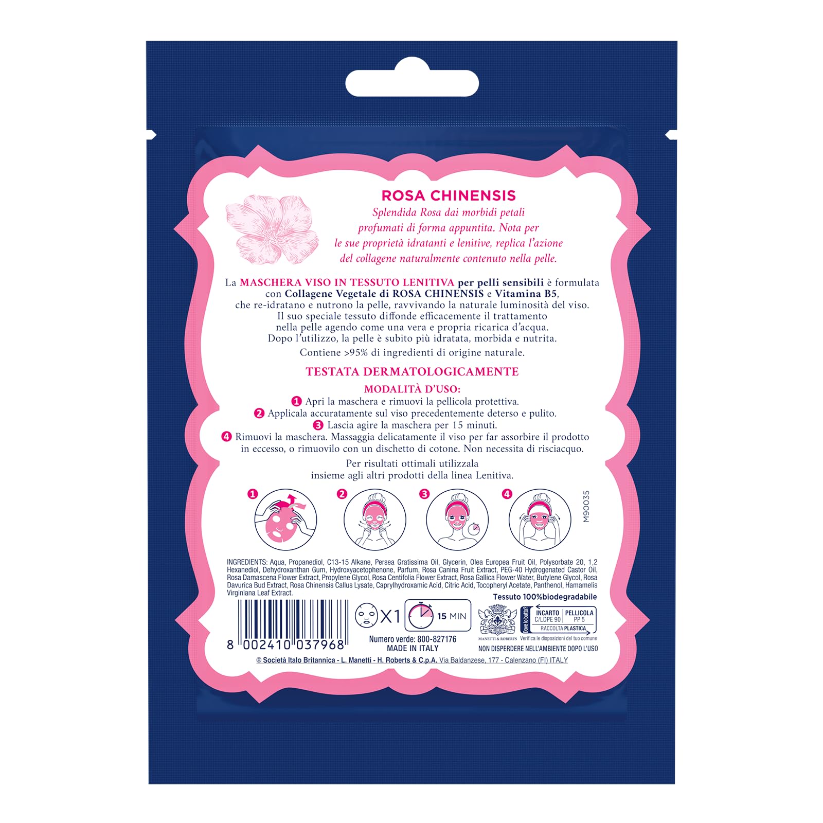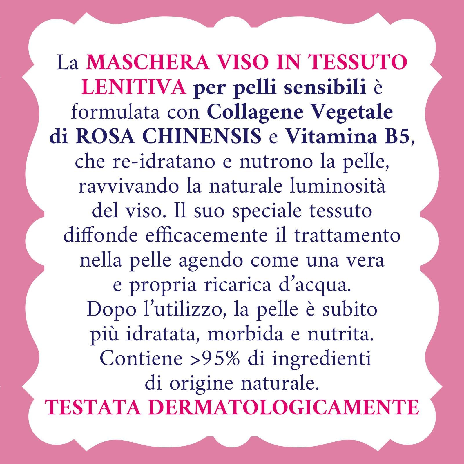 Acqua alle Rose, Maschera Viso in Tessuto Lenitiva Idratante Intensiva con Estratto di Rosa Chinensis, Ideale per le Pelli Sensibili o Secche, con Vitamina B5 Lenitiva, Nutre e Reidrata, Monouso 1 pz