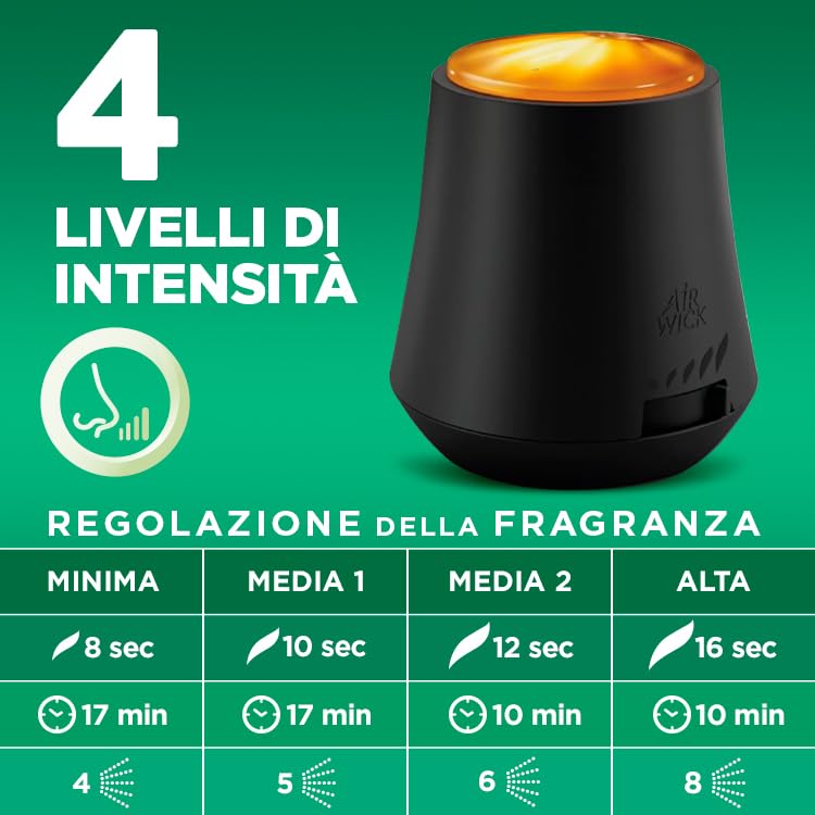 - LA REGOLAZIONE DELLA FRAGRANZA: Scegli tra 3 livelli di erogazione: minimo, intermedio e massimo, per offrire la quantità di aroma desiderato in ogni ambiente