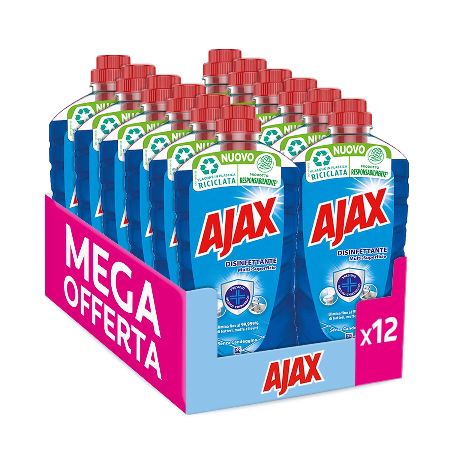 Ajax Detersivo Pavimenti Disinfettante Multi-Superficie, Confezione da 12 x 950ml I Senza candeggina I Elimina facilmente il grasso | azione disinfettante e pulizia profonda