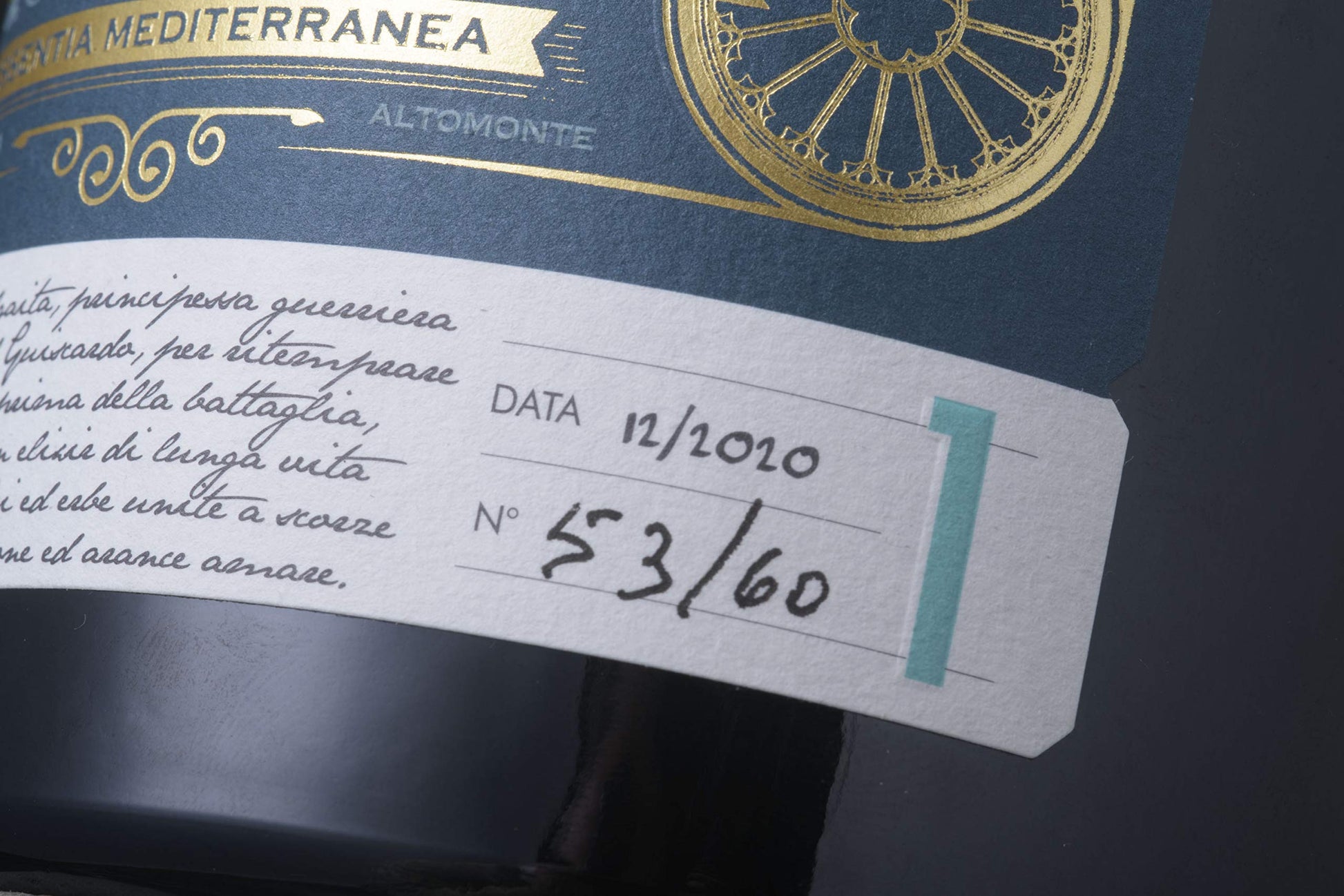 Dettagli: Audace e Spirituale, Irriverente Antico elixir originale ed autentico, ottenuto artigianalmente grazie ad un processo di macerazione a freddo, in cui bacche, radici, erbe aromatiche e officinali, si fondono con il gusto intenso e unico di cedro e bergamotto di Calabria, Limone di Sorrento IGP e Arancia Rossa di Sicilia IGP