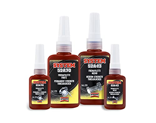 - Frenatura permanente - I frenafiletti System 52A43 sono adatti per la frenatura di dadi e di componenti filettati realizzati in diversi materiali, inclusi metalli cadmiati e zincati.