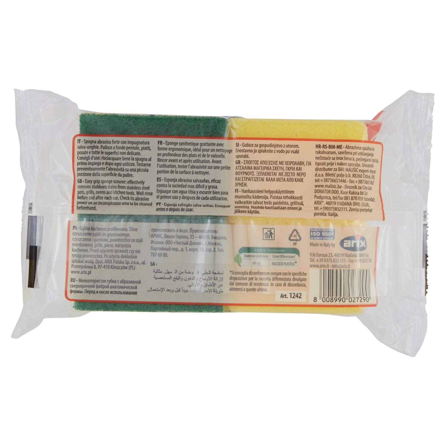 Dettagli: Arix spugna abrasiva con impugnatura 2 pzaderisce meglio alle superfici sbiancando ed igienizzando più in profondità il wc e tutti i sanitari, per un pulito e un'igiene di lunga durata. In più è arricchito con bicarbonato, noto per le sue proprietà sbiancanti. Per la pulizia del wc grazie al suo collo angolato arriva fin sotto i bordi del wc, aderisce alle pareti per un'igiene completa per tutto il wc. Per la pulizia degli altri sanitari adatto anche per la pulizia di lavandini, bidet, vasche da bagno, docce, rubinetterie, pavimenti in ceramica, piastrelle e fughe. Usato con regolarità, previene la formazione degli ingorghi negli scarichi.