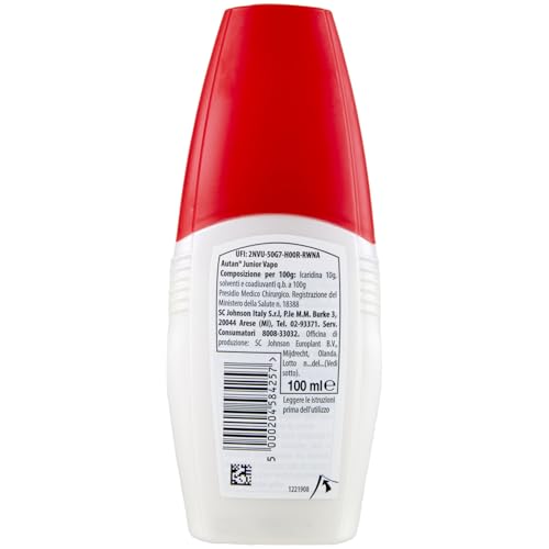 Dettagli: Descrizione Autan Junior Vapo è un repellente per insetti che protegge te e la tua famiglia dalle zanzare per un massimo di 4 ore. Fornisce una protezione rapida ed efficace dalle zanzare per farti vivere a modo tuo. Questo repellente per insetti ha una formula dermatologicamente testata con sostanze idratanti e aloe vera. Autan Junior Vapo è adatto a bambini di età superiore ai 2 anni e può essere spruzzato direttamente sulla pelle oppure - per le zone sensibili - può essere spruzzato sulle mani e poi applicato sulla pelle. Tenerlo fuori dalla portata dei bambini e degli animali domestici. Leggere l'etichetta per altre precauzioni e istruzioni per l'uso. Ingredienti Composizione per 100g: Icaridina g 10 Solventi e coadiuvanti q.b. a g 100 Contenuto della confezione 1 Autan Family Care Junior Vapo Repellente