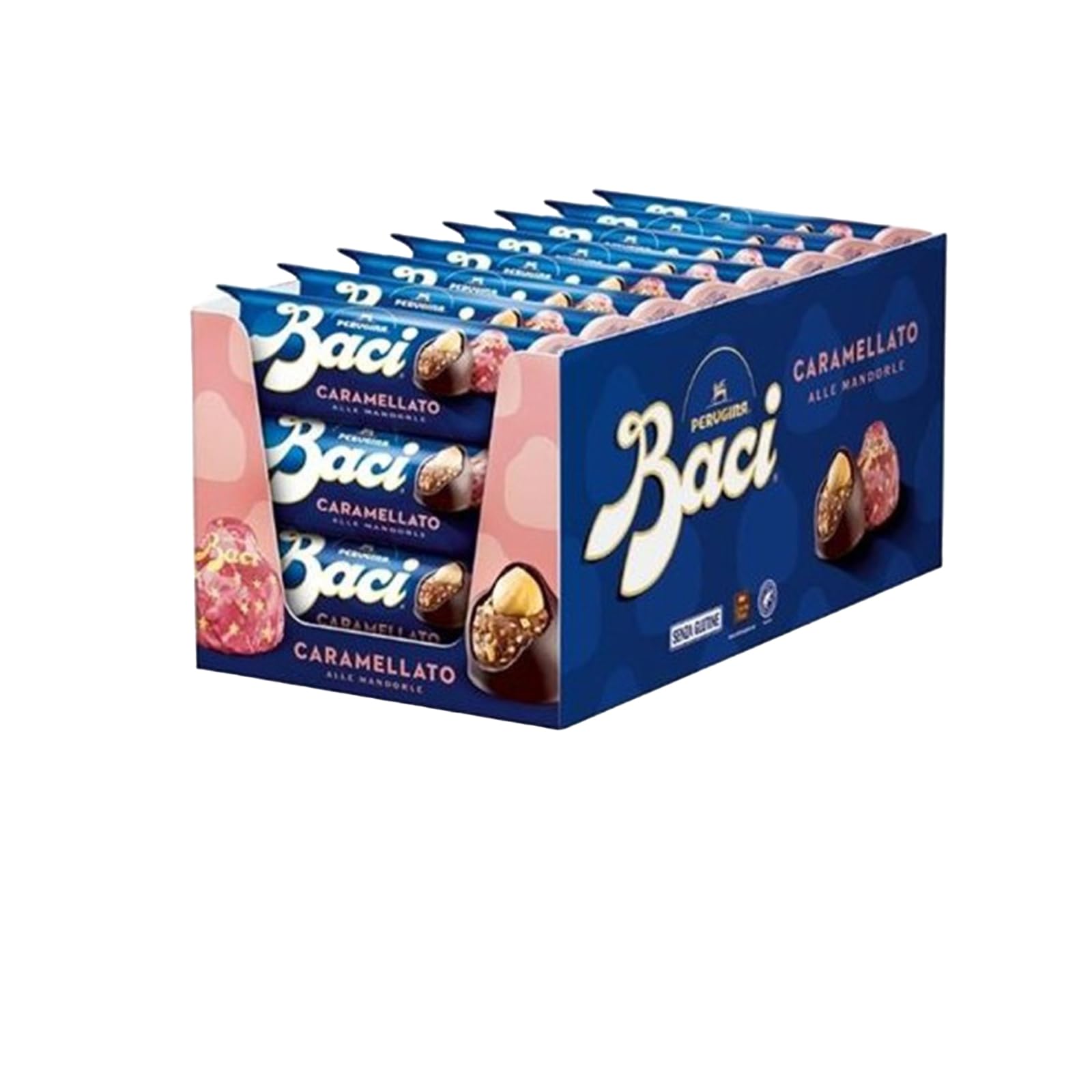 Baci Perugina Caramellato alle Mandorle Espositore da 21 Tubi x 37,5 gr (787,5g) Cioccolatini Senza Glutine Con Morbido Cuore al Gianduia con Granella di Mandorle Caramellate