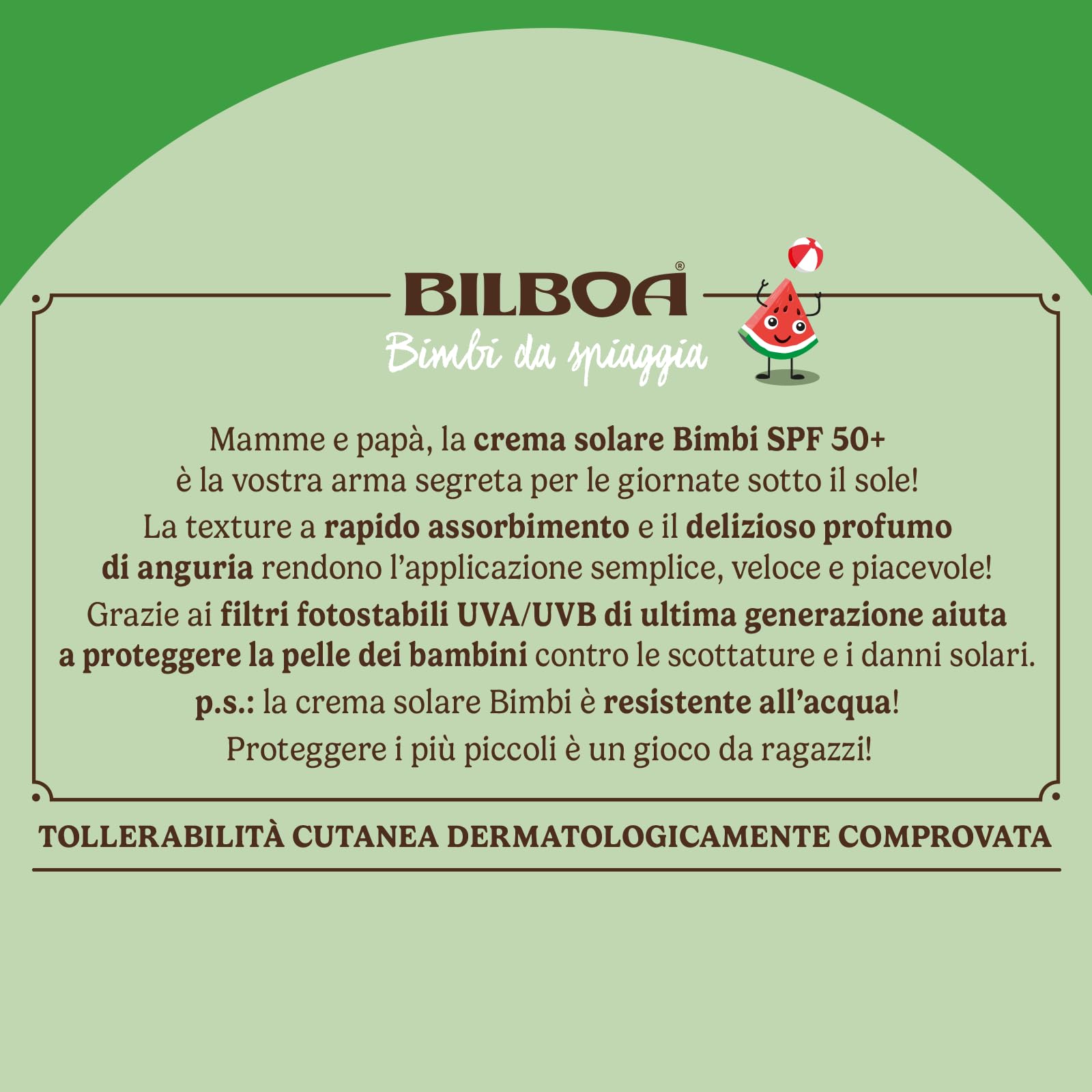 - p.s.: la crema solare Bimbi è resistente all’acqua!