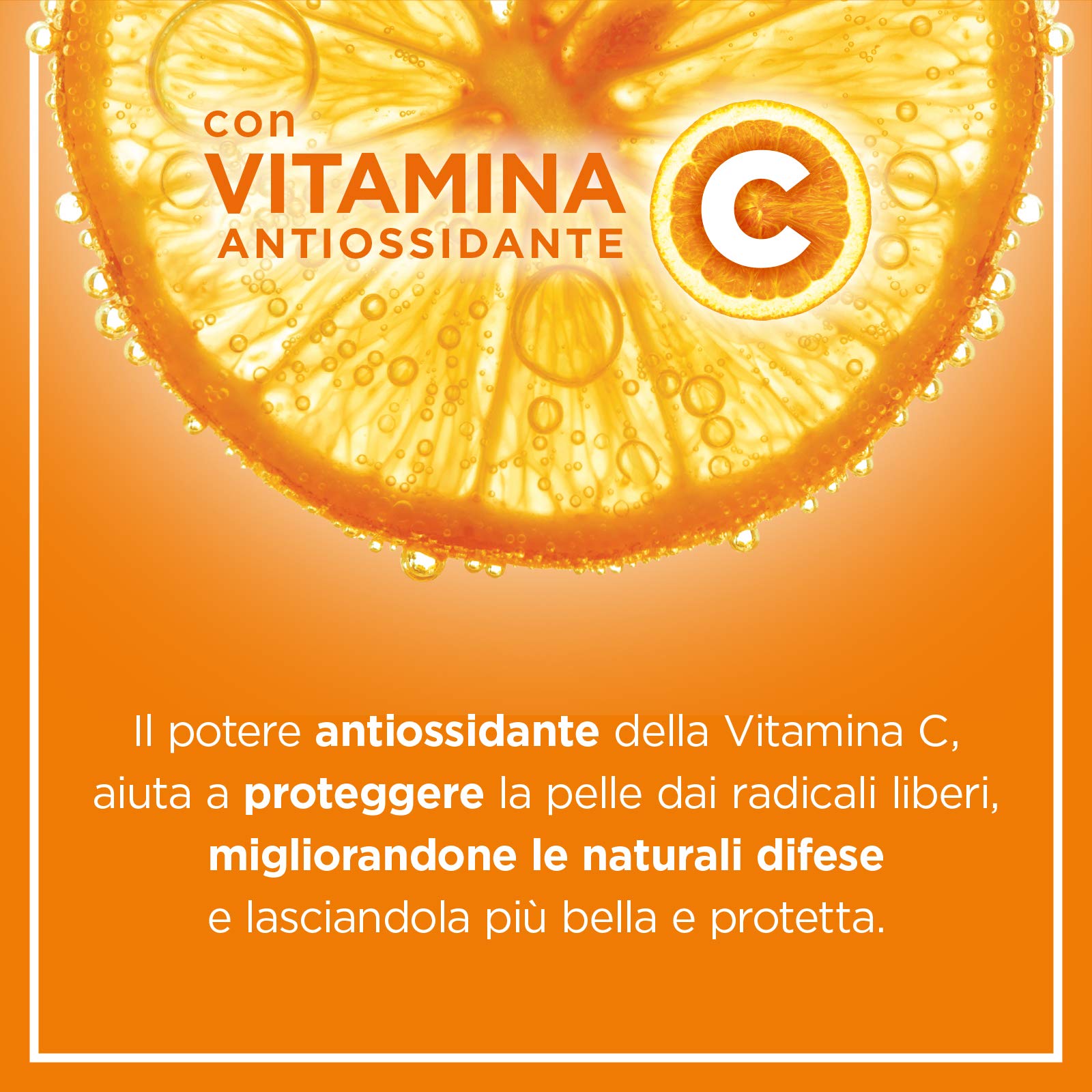 - La Vitamina C aiuta a migliorare le naturali difese della pelle e a prevenire i danni dei radicali liberi.