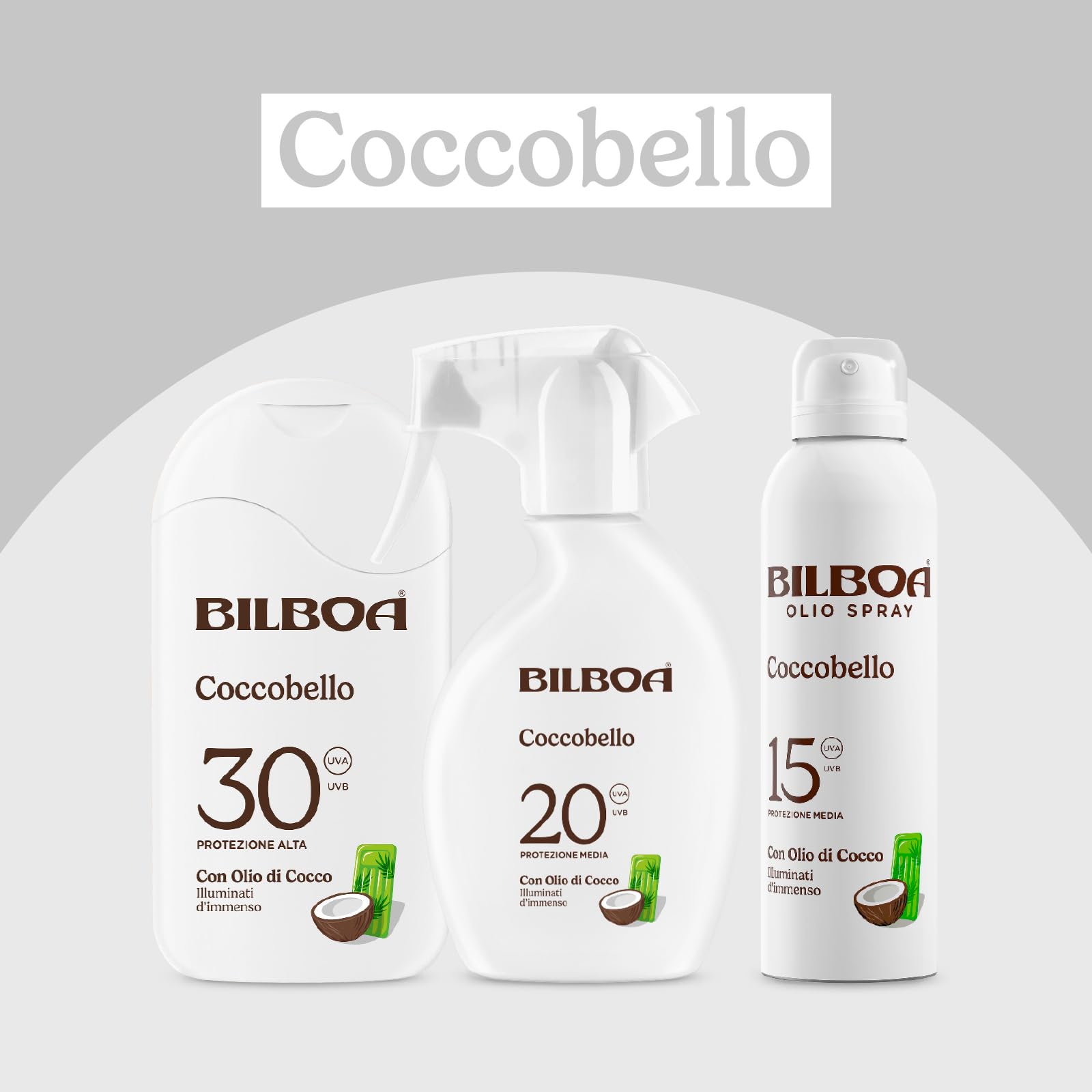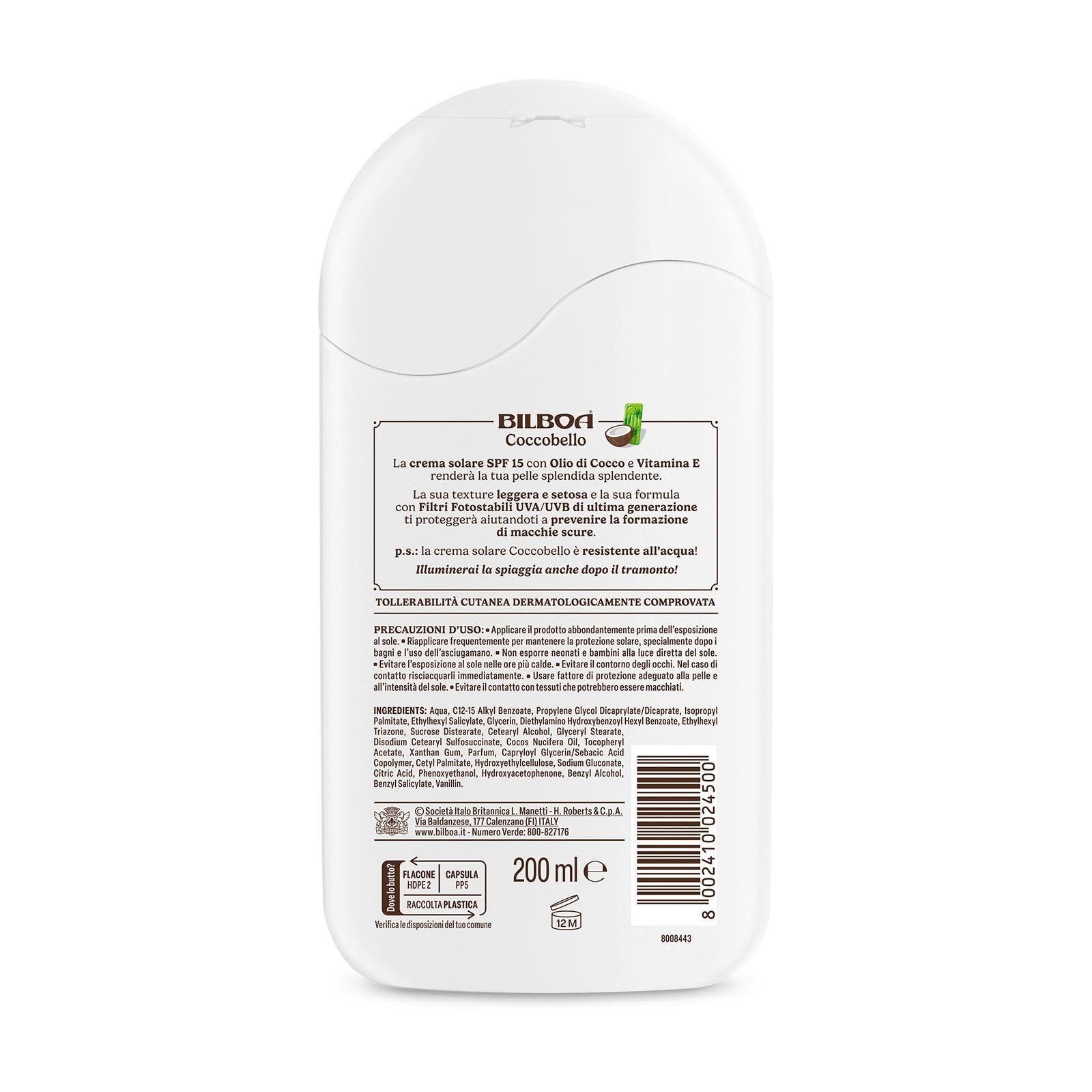Bilboa Coccobello Latte Solare SPF 15, con Olio di Cocco, Illuminati d’Immenso, Resistente all'Acqua, 200 ml
