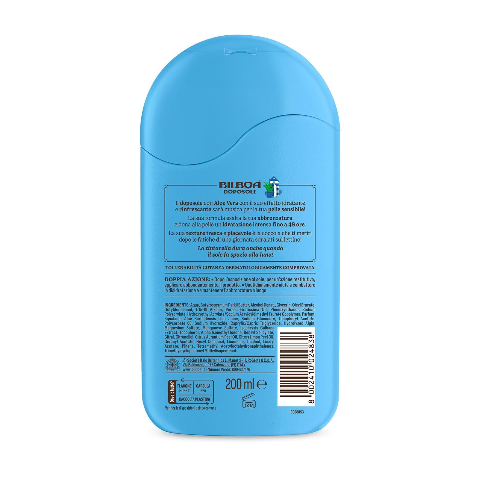 Bilboa, Doposole Sapore di Aloe, Abbronzatura Duratura con Aloe Vera, Musica per le Pelli Sensibili, Dermatologicamente Testato - 200 ml