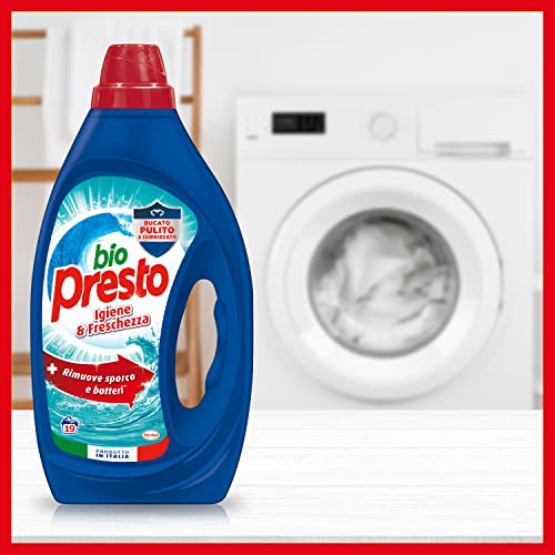 - Confezione multi pacco da 6 flaconi di Bio Presto Liquido Igiene & Freschezza, Detersivo Lavatrice Liquido da 19 lavaggi, per un totale di 114 lavaggi