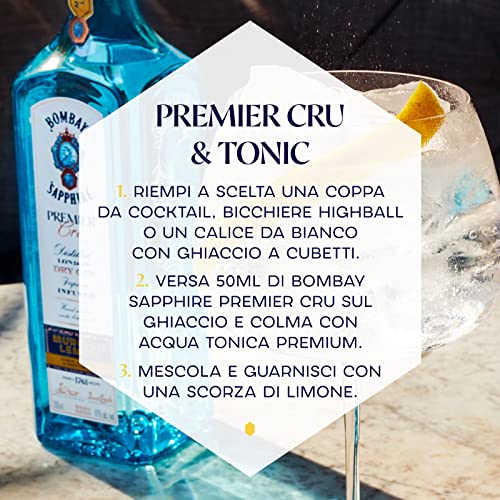 - Bombay Sapphire Premier Cru è un gin artigianale che celebra gli agrumi più vivaci e aromatici al mondo: limoni, mandarini e dolci arance Navel provenienti da Murcia