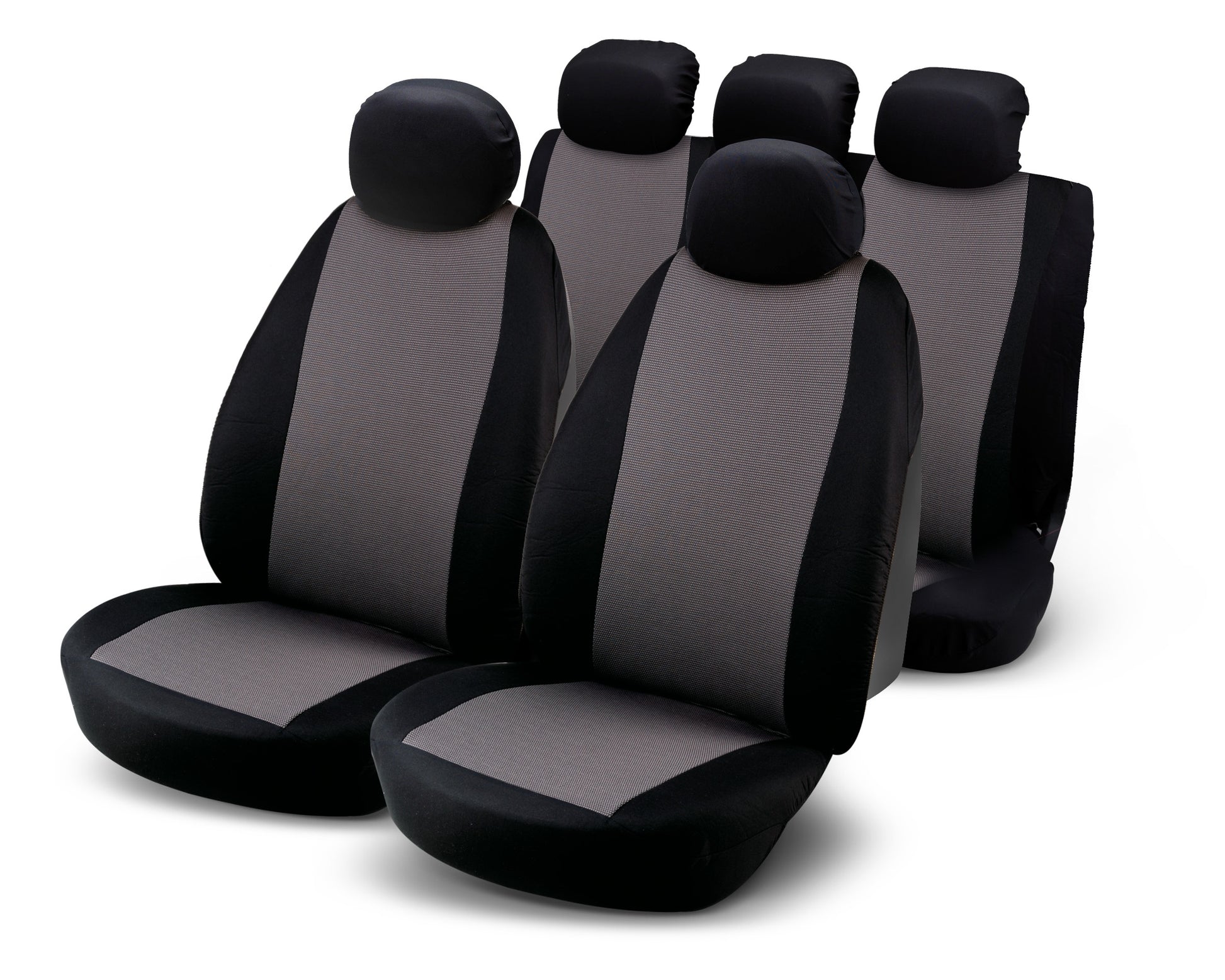 - Set completo di 2 coprisedili anteriori, 2 coprisedili posteriori con 3 zip e 5 appoggiatesta