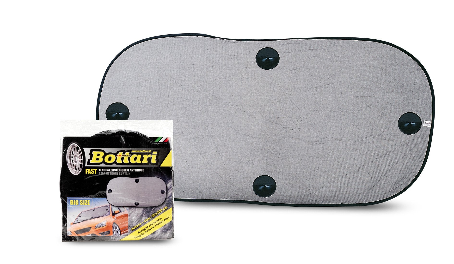Dettagli: Bottari 22052 Tendina parasole anteriore o posteriore "Fast". Tenda parasole universale in tessuto microforato nero ombreggiante. Ideale per l'applicazione sul parabrezza così come sul lunotto posteriore. Robusto ed altamente oscurante. Provvisto di ventose per il fissaggio. Rapido da applicare, leggerissimo ed estremamente pratico grazie alla formulazione flessibile che permette di ripiegarlo su se stesso. Dimensioni 50x100 cm.
