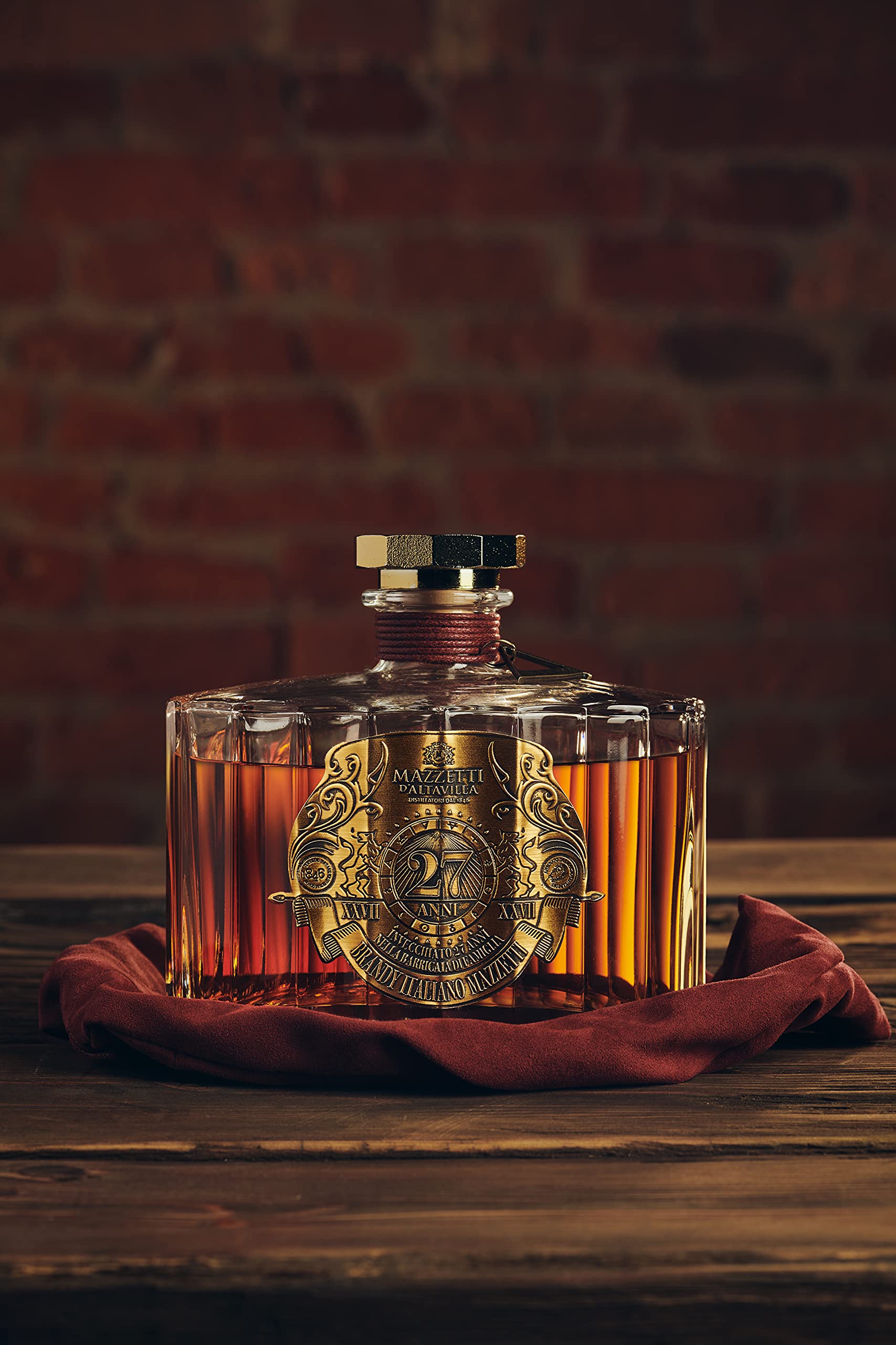 Dettagli: I profumi, il colore e le note di gusto che si possono apprezzare incontrando quest'acquavite di vino invecchiata ben 27 lunghi anni costituiscono una vera e inimitabile poesia per i sensi. Solo la partita piu pregiata di questo distillato di vino viene inserita nelle botti delle piu preziose essenze lignee per favorire un'impareggiabile evoluzione sensoriale. Un prodotto e importante come il suo eccellente invecchiamento e come il decanter che ospita il nobile distillato. Brandy Italiano invecchiato oltre 27 anni; invecchiata in botti di grandi dimensioni (12 ettolitri) per oltre 10 anni per poi affinare il proprio bouquet in piccole botticelle francesi di differenti essenze lignee e tostatura.