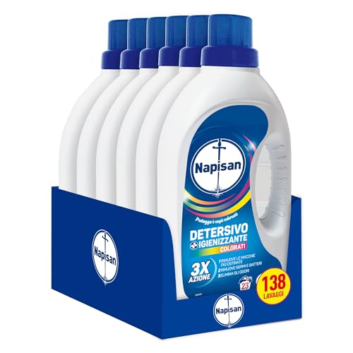 - DETERSIVO CAPI COLORATI - Napisan detersivo igienizzante colorati è formulato per proteggere i colori lavaggio dopo lavaggio evitando il trasferimento dei colori da un capo all'altro