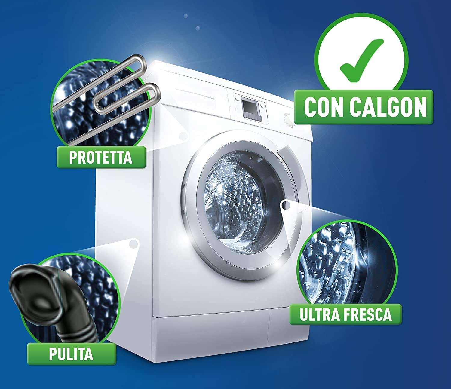 Dettagli: Descrizione Scegli il nuovo Calgon igiene +. Il primo prodotto della linea Calgon che garantisce la protezione della macchina dal calcare e la mantiene pulita e igienizzata. Calgon hygiene + combina un'imbattibile protezione anticalcare con ingredienti igienizzanti in grado di eliminare i batteri presenti nella lavatrice. Ingredienti Composizione chimica (Per informazioni sugli ingredienti www.rbeuroinfo.com):<5 % Policarbossilati, Tensioattivi Non-ionici, Disinfettante, Profumo, Limonene, Hexyl Cinnamal 100 g di prodotto contengono: 1 g di cloruro di benzalconio, tensioattivi, polimeri, agenti sequestranti, profumo, colore e acqua fino a 100 grammi