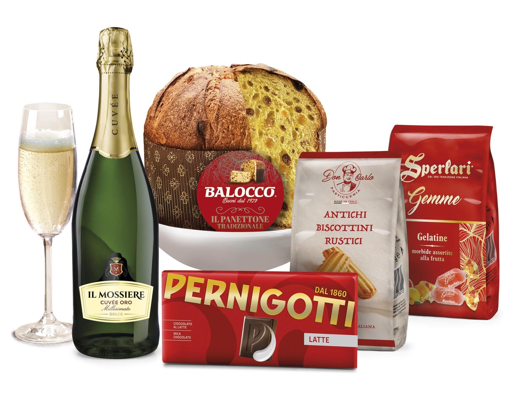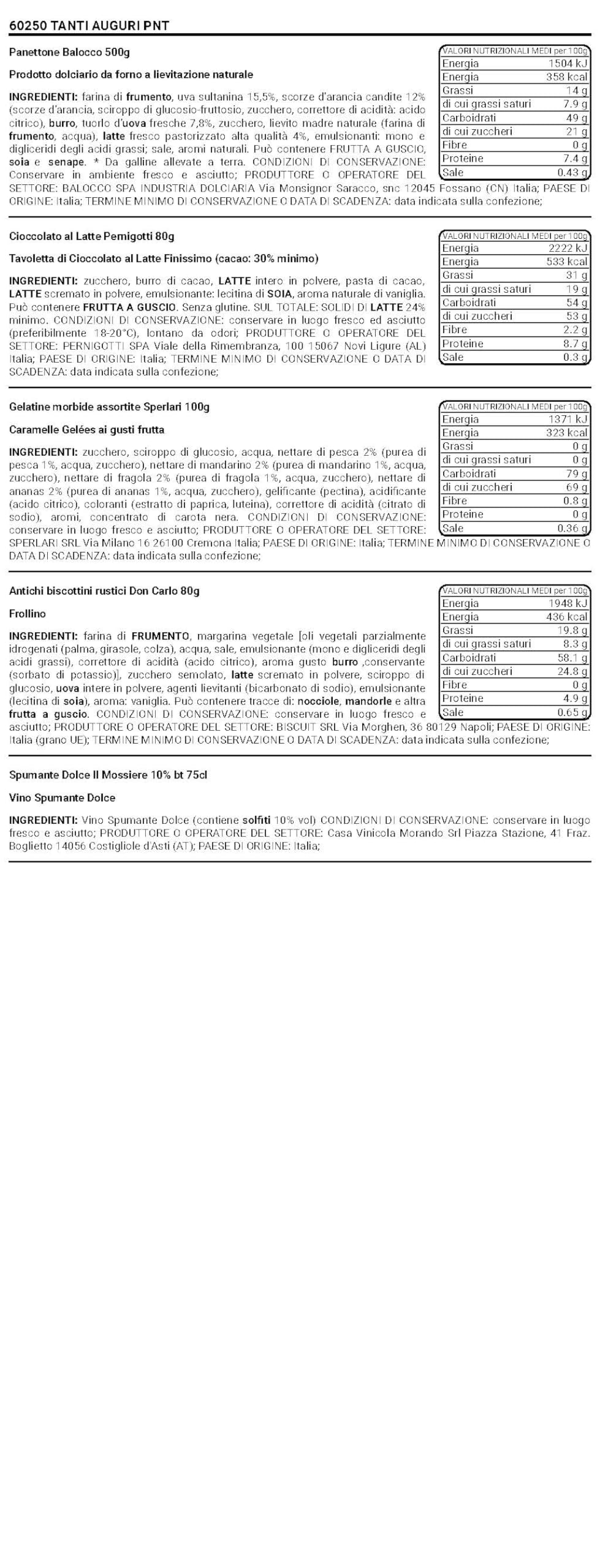 - IL CESTO CONTIENE 5 PEZZI: Panettone Alto Classico da 500g, Antichi Biscotti Rustici da 80g, Cioccolato al Latte ricetta originale da 80g, Gemme Gelatine Morbide Assortite alla Frutta da 100g e una Bottiglia di Spumante Dolce Cuvée Millesimato da 750ml.