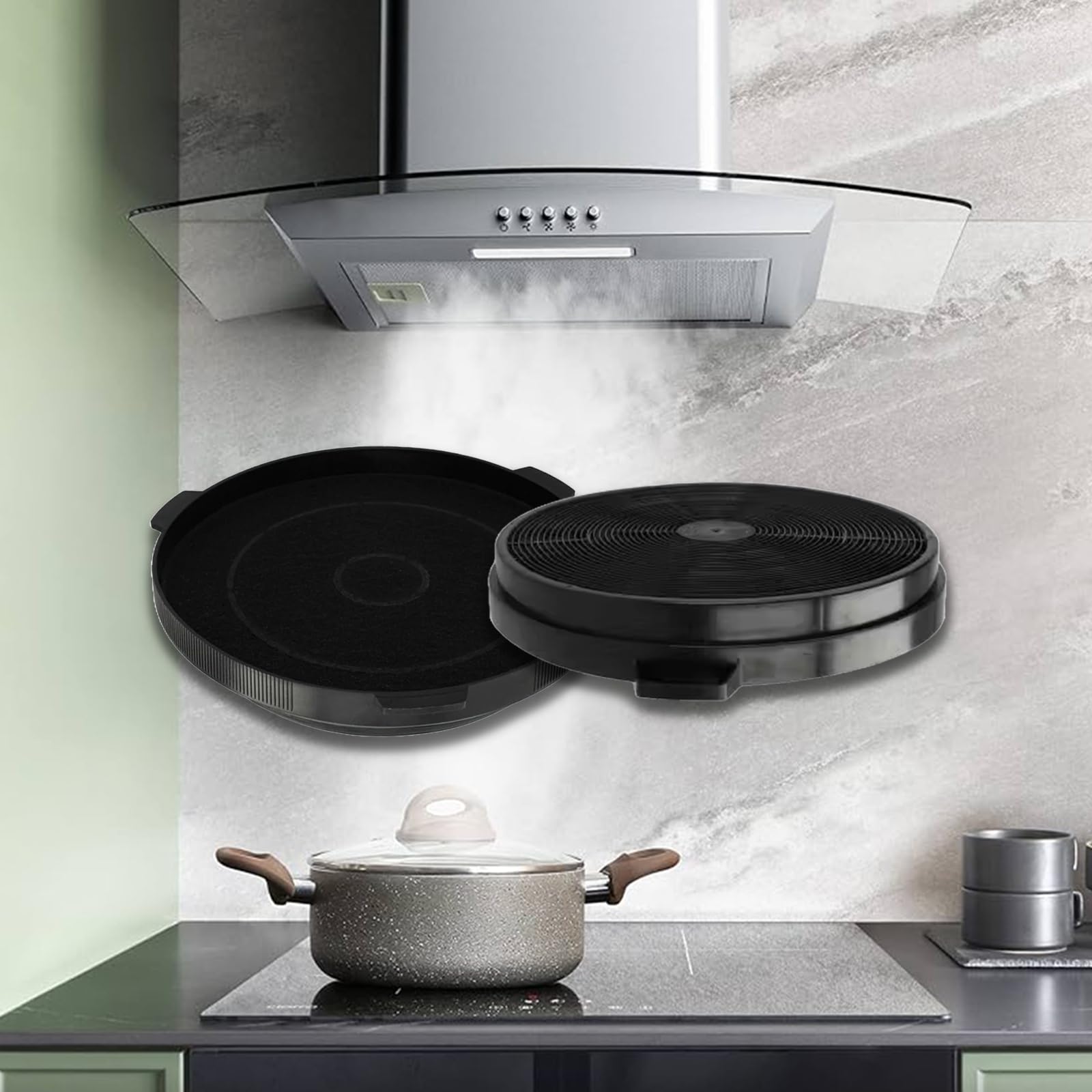 - 🌿 Migliora l'aria in cucina con il nostro filtro ai carboni attivi; progettato per un ambiente più fresco e privo di odori; ideale per chi ama cucinare senza compromessi sulla purezza dell'aria; compatibile con diversi modelli, offre una soluzione versatile e affidabile