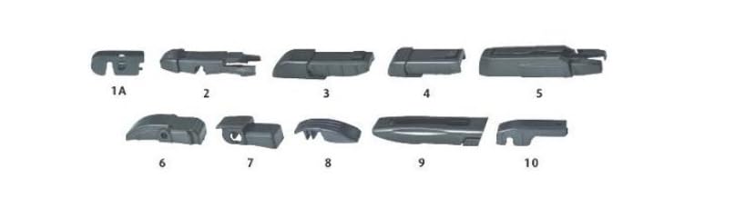 - Gli adattatori sono inclusi nel pacchetto e servono per adattare le spazzole ai diversi tipi di bracci tergicristallo presenti sui veicoli.
