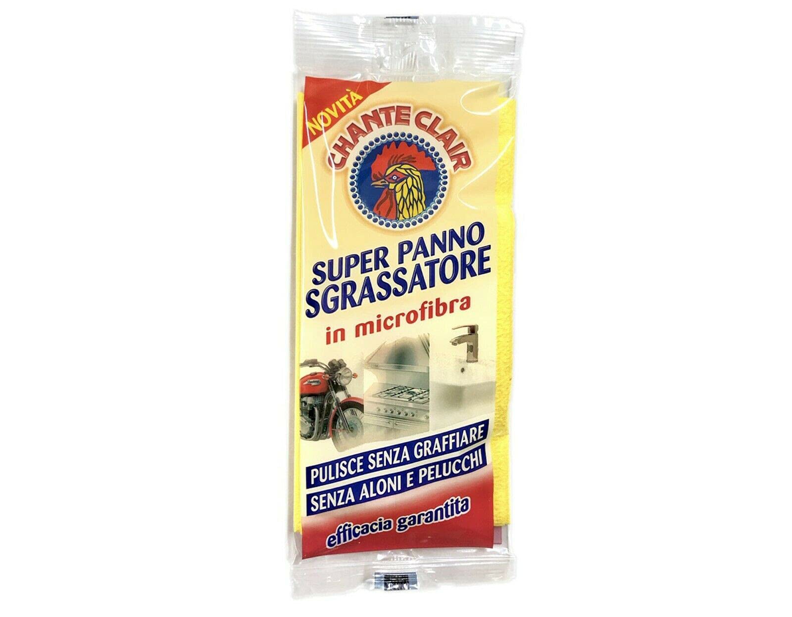 Dettagli: 12 Panni CHANTECLAIR SUPER PANNO SGRASSATORE IN MICROFIBRA PULISCE SENZA ALONI. Il super Panno Sgrassatore CHANTECLAIR è ideale per la pulizia delle piccole superfici domestiche come fornelli, cappe, affettatrici, piani di lavoro, sanitari e lavandini. Grazie alla speciale struttura in microfibra di altissima qualità, il SUPER PANNO SGRASSATORE Chanteclair rimuove facilmente anche lo sporco più ostinato senza graffiare le superfici. Non lascia aloni e pelucchi ed è inoltre particolarmente resistente ed assorbente. Se usate con lo Sgrassatore Chanteclair, ne potenzia la sua efficacia!
