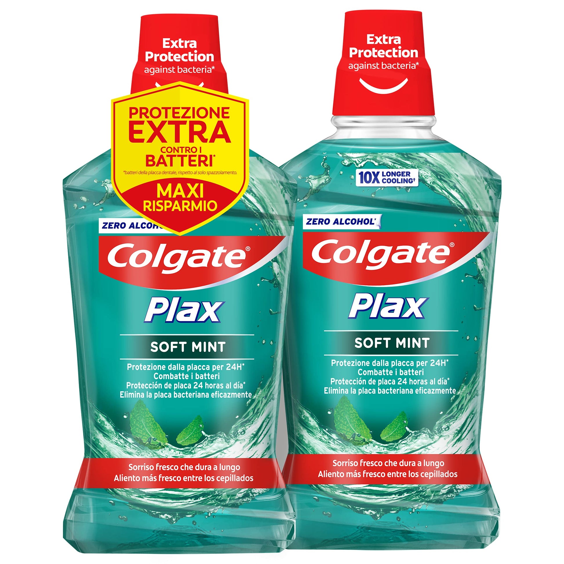 Colgate Collutorio Plax Soft Mint Green 2 Confezioni da 500 ml I Con Ingrediente Antibatterico I Protezione dalla Placca per 24H I Gusto Menta I Rilascia una nuova piacevole sensazione di freschezza