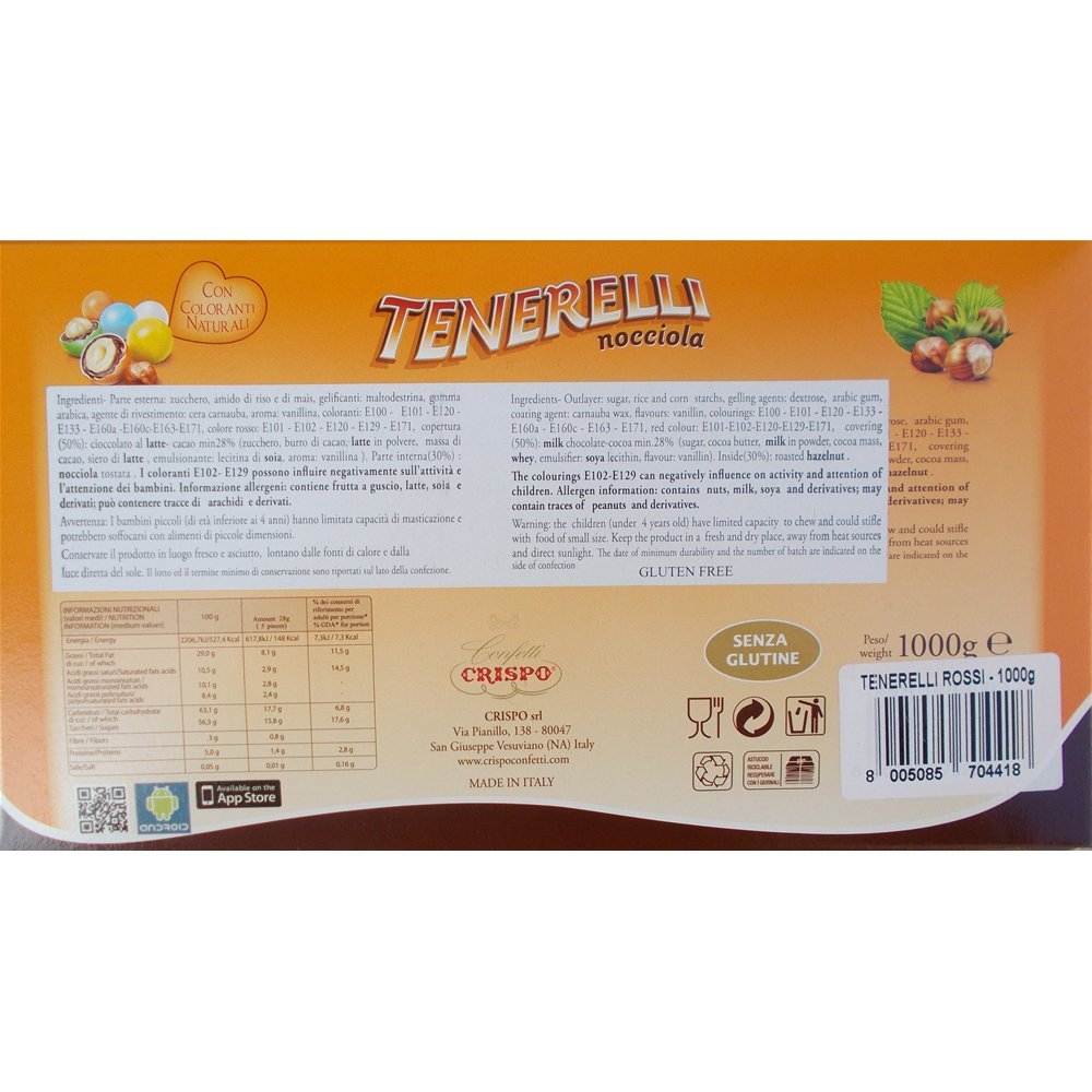 CONFETTI CRISPO TENERELLI NOCCIOLA CIOCCOLATO AL LATTE PRALINE ROSSE CONFEZIONE DA 1 KG. BOMBONIERE CONFETTATA LAUREA - 04418