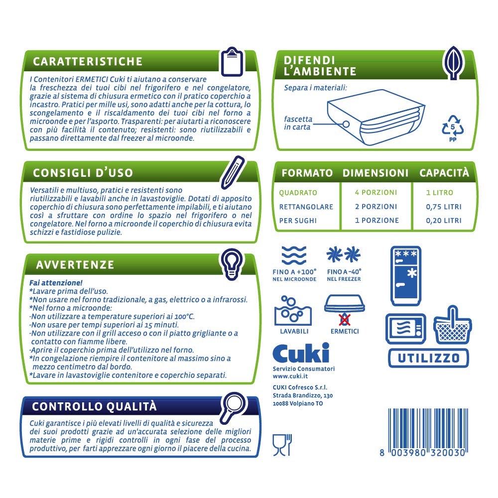 - I Contenitori Ermetici Cuki vengono incontro alle tue esigenze di praticità: grazie al coperchio di chiusura a tenuta ermetica sono ideali per conservare la freschezza dei tuoi cibi nel frigorifero e nel congelatore.