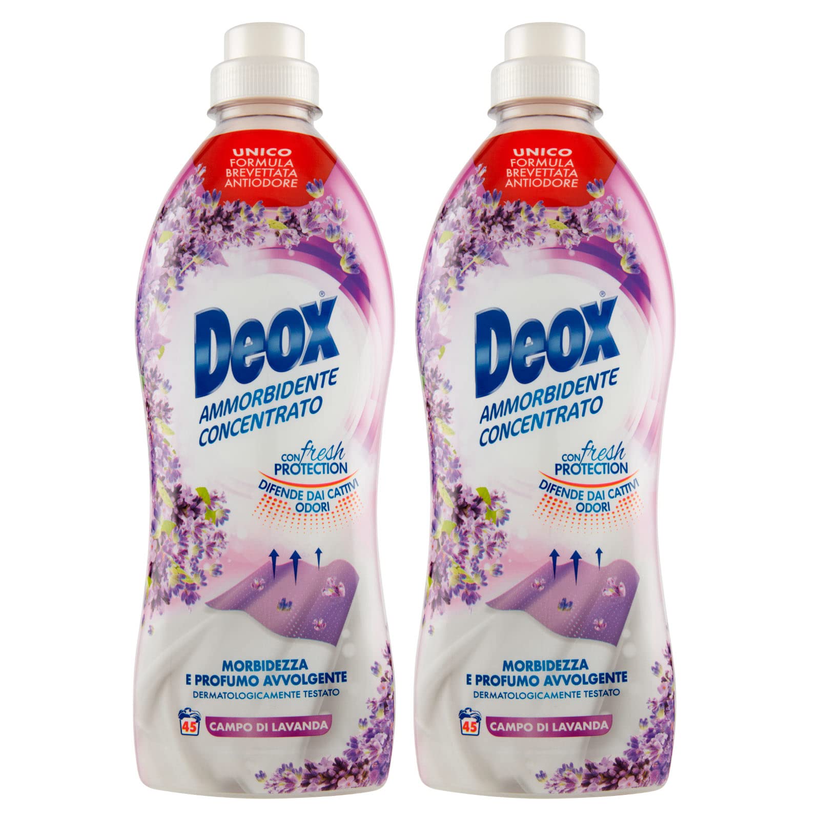 Deox - Ammorbidente Lavatrice Concentrato, Capi Morbidi e Profumati, con Tecnologia Fresh Protection, Fragranza Campo di Lavanda, 45 Lavaggi x 2 Confezioni