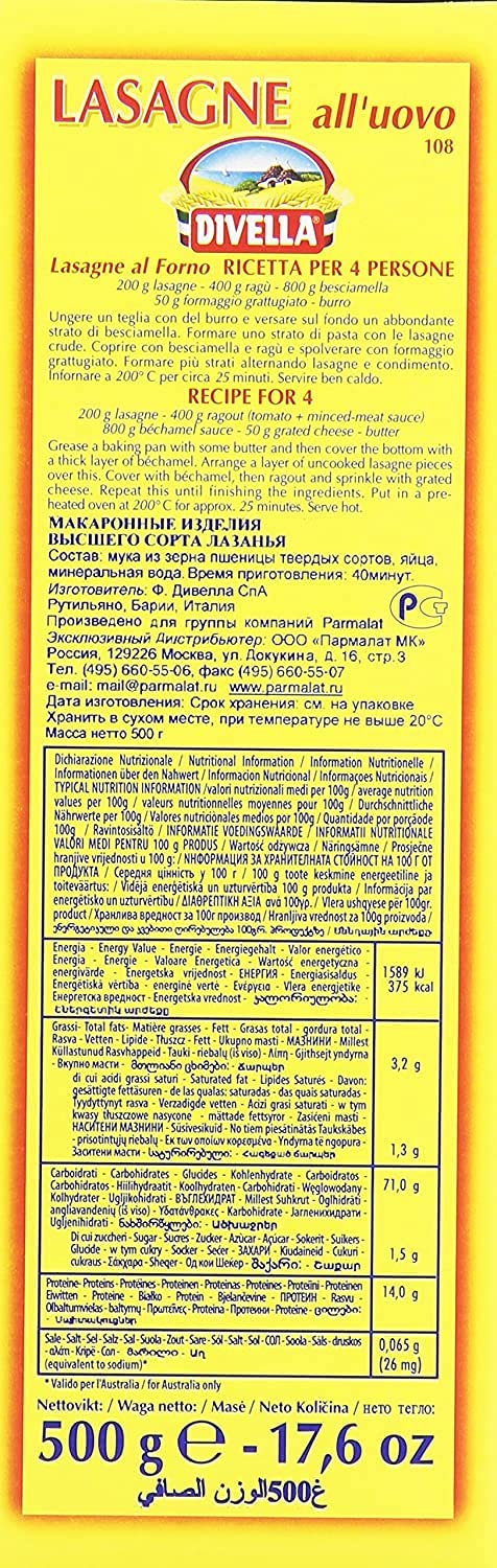 Divella Lasagne All Uovo 3 Pezzi Da 500 Grammi