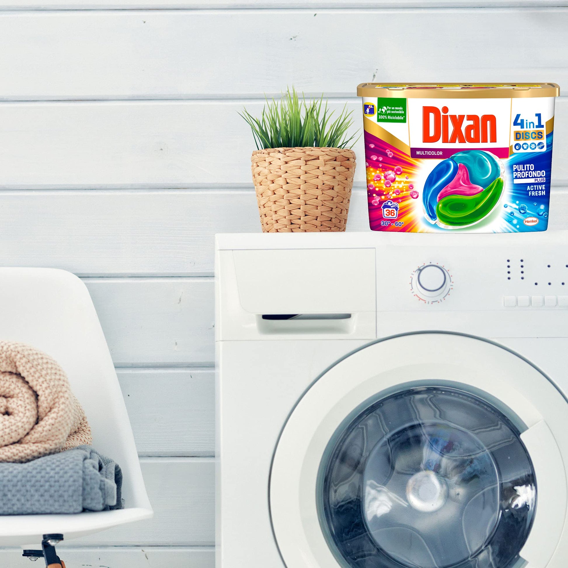 - Dixan discs rende il tuo bucato brillante, evitando l'ingrigimento dei tuoi capi anche dopo molti lavaggi