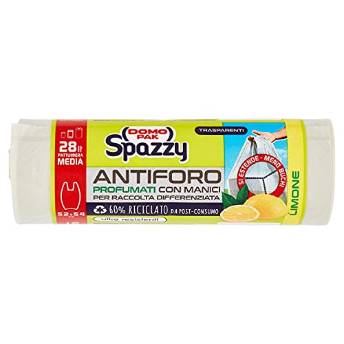 Dettagli: Domopak Spazzy è la linea completa di sacchi nettezza che unisce funzionalità, resistenza ed ecologia, avvalendosi da 20 anni di un processo produttivo brevettato e certificato, basato sul riciclo della plastica (PE) da post-consumo che permette di ottenere materia prima di ottima qualità per la produzione dei propri sacchi nettezza. Tutti i sacchi nettezza Domopak Spazzy vengono prodotti con polietilene (PE) riciclato da post-consumo in quantità variabile dal 100% al 60%. Quanto ricicliamo? La plastica che recuperiamo e ricicliamo in un anno per produrre i sacchi nettezza Domopak Spazzy è così tanta che potrebbe ricoprire: - 2 volte la superficie di Firenze - 30.000 volte la superficie di un campo da calcio di Serie A - 65.000 volte la superficie del Colosseo Quanta CO2 equivalente risparmiamo? L’anidride carbonica è un gas dannoso che contribuisce al riscaldamento globale, ma con il nostro processo di riciclo, in un anno riusciamo a risparmiare C0₂ eq pari alle emissioni di: - 82.000 viaggi in treno da Milano a Napoli. Tutti i prodotti Domopak Spazzy sono conformi alla UNI EN 13592, normativa europea che specifica le caratteristiche generali, i metodi di prova e i requisiti che devono avere i sacchi di plastica per la raccolta dei rifiuti domestici.