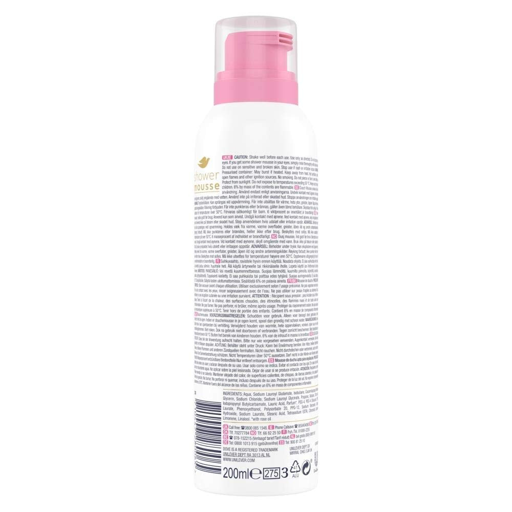 Dettagli: Descrizione Dove mousse doccia con olio di rosa, 200ml. Ingredienti AQUA, SODIO LAUROYL GLUTAMATO, ISOBUTANO, COCAMIDOPROPYL BETAINE, GLYCERIN, SODIO CLORIDO, SODIO LAUROYL GLYCINATE, PROPANO, BUTANO, ACIDO CITRIC, IODOPROPYNYL BUTYLCARBAMATE, LAURIC ACID, PROFUFUFUFUFU, M*, PEG-4 , PEG-4 DILAURATO, PEG-4 LAURATO, fenossietanolo, polisorbato 20, PPG-12, SODIO BENZOATO, SODIO IDROSSIDO, SODIO LAURATO, STEARIC ACID, TETRASODIO EDTA, CITRONELLOL, GERANIOL, LIMONENE, LINALODIO, OL. *PROFUMO CON OLIO DI ROSA Indicazioni Per una pelle pulita e coccolata, basta premere la pompa per rilasciare un volume generoso della schiuma Dove all'olio di rosa al palmo della mano. La crema morbida al profumo floreale schiuma sul tuo corpo mentre ti lavi.