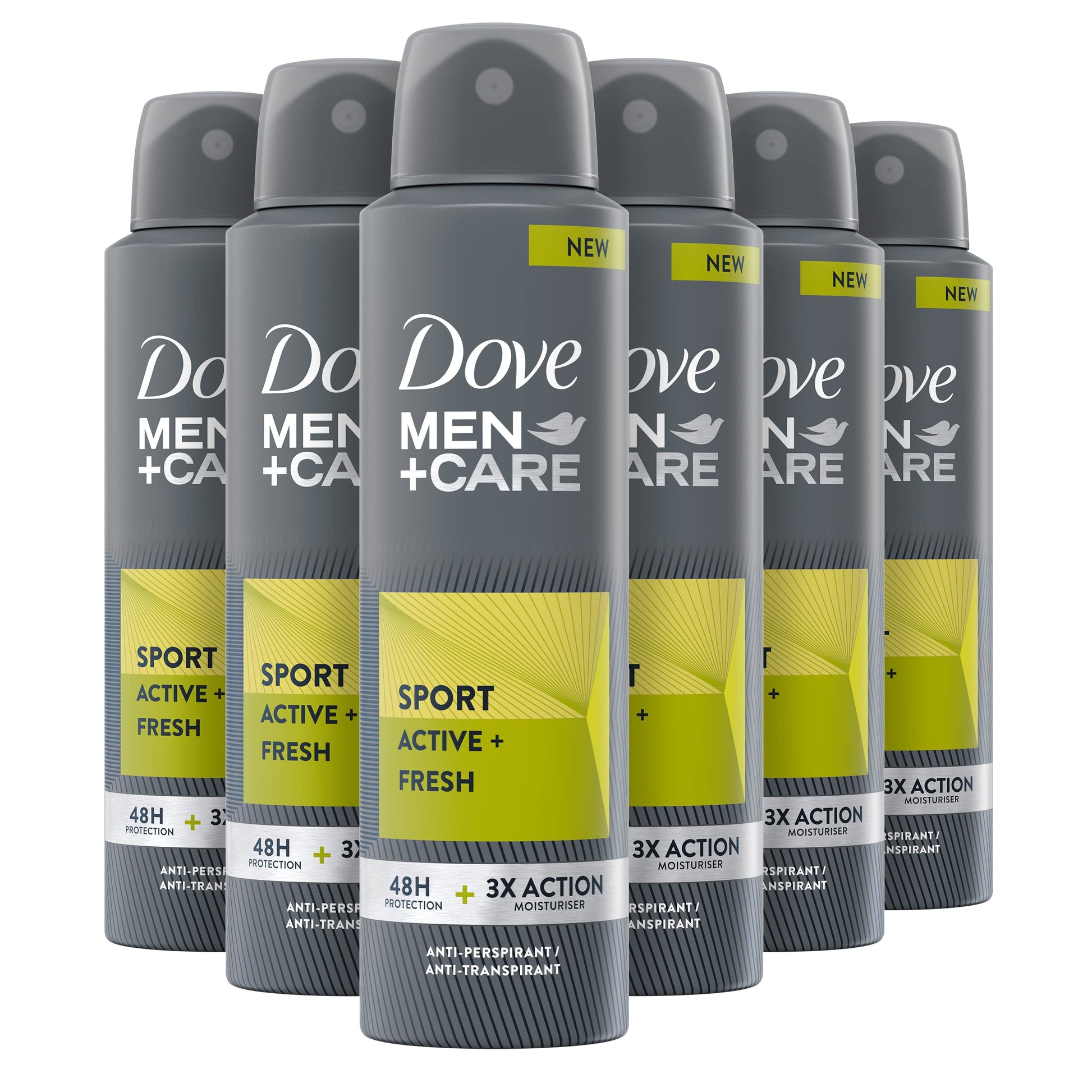 Dove Men+Care Deodorante Spray Sport Active, con 1/4 di Crema Idratante, Deodorante Uomo Antitraspirante Senza Alcol, Aiuta a Ridurre le Irritazioni, Fino a 48 Ore di Protezione, 6 pezzi da 150 ml