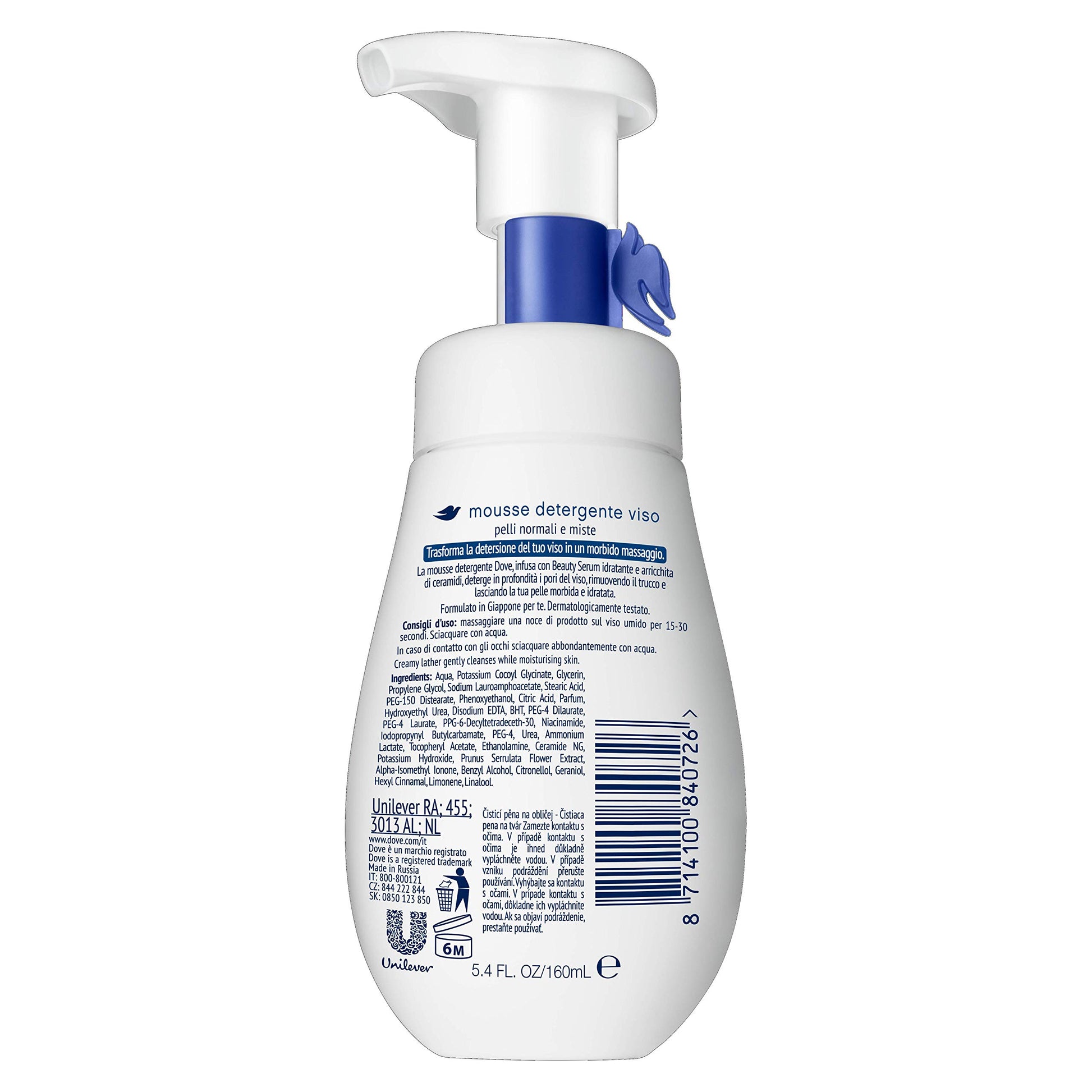 - Dove Mousse Detergente Viso lascia la pelle morbida, liscia e idratata