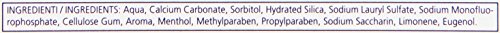 Dettagli: Descrizione prodotto Grazie al perfetto equilibrio della sua formulazione, aiuta a mantenere la salute dei denti e della bocca. Il Fluoro rafforza lo smalto dei denti rendendoli più resistente alla carie, mentre la Menta Pura assicura una prolungata freschezza. Ingredienti Aqua, Calcium Carbonate, Sorbitol, Hydrated Silica, Sodium Lauryl Sulfate, Sodium Monofluorophosphate, Aroma, Menthol, Cellulose Gum, Sodium Saccharin, Methylparaben, Propylparaben, Limonene