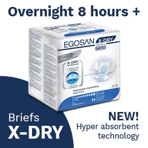 - Prendersi cura dei propri cari: la nostra nuova tecnologia iper assorbente riduce le irritazioni che non possono essere trovate da nessun'altra parte. Ciò consente meno modifiche durante il giorno e la notte. Semplifica la vita quotidiana di chi lo indossa con l'esclusiva tecnologia X-Dry di Egosan.