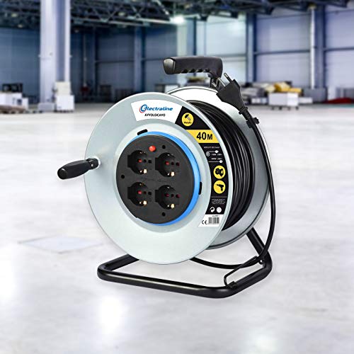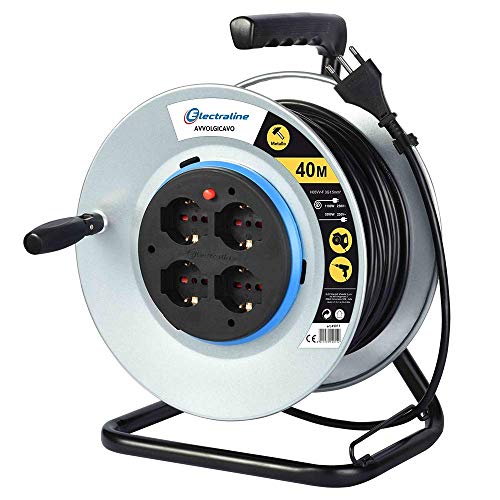 Dettagli: Avvolgicavo, Avvolgi-Prolunghe senza cavo in metallo antiruggine con 4 prese 10/16A italiane + Schuko, diametro 290 per uso professionaleAvvolge fino a 50M di cavo/prolunga. Base in metallo per maggior resistenza agli urti e agli agenti atmosferici.