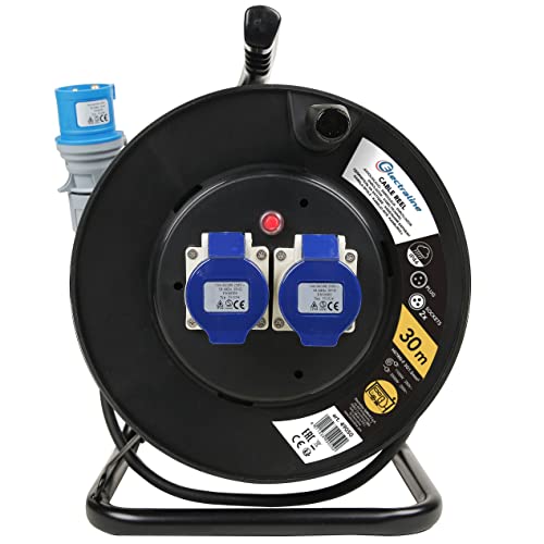- Prolunga in gomma con avvolgicavo 30 m 2 prese industriali iec spina a 3 poli cee adatto per camper, campeggio, caravan, barca, cantiere