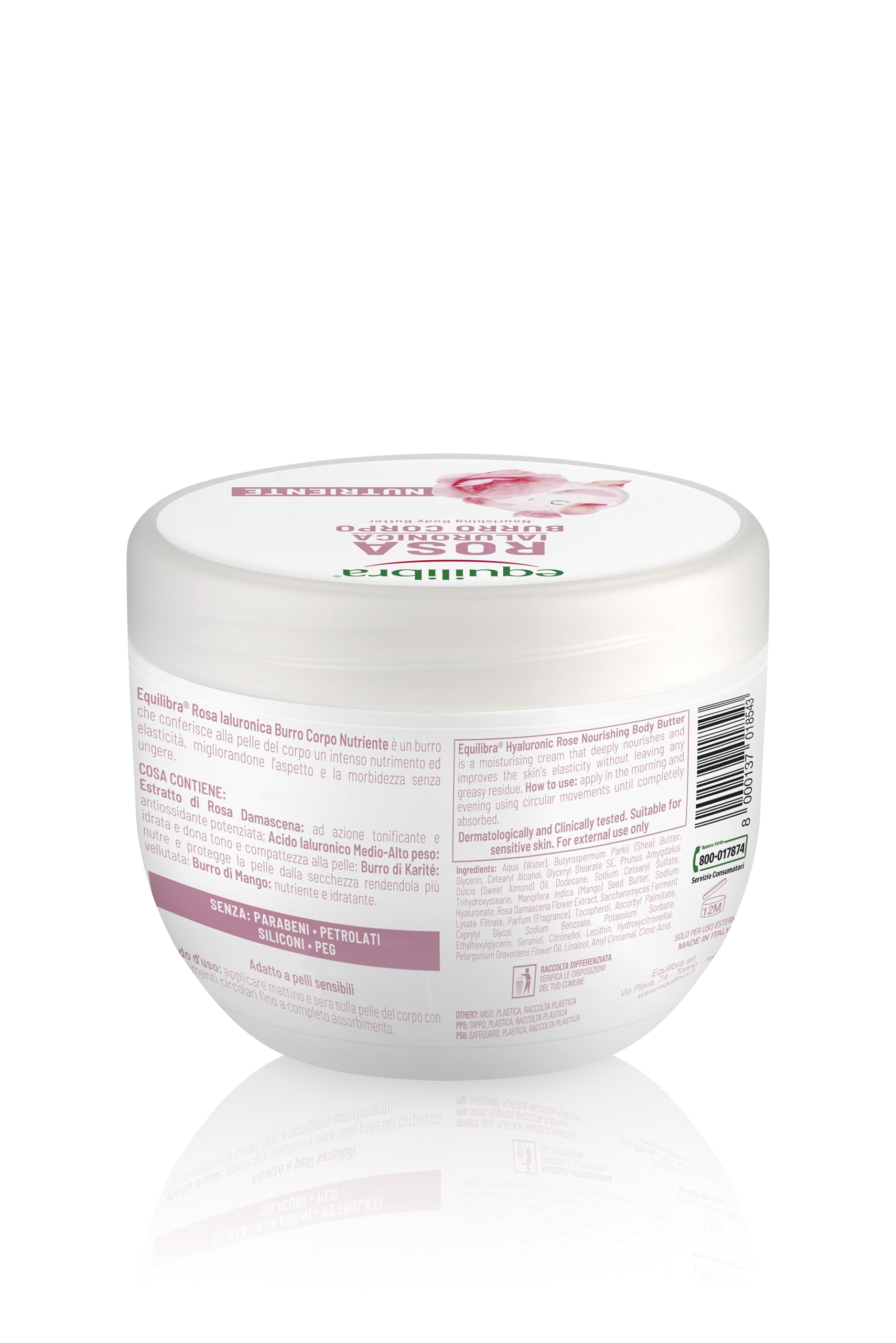 Equilibra, Burro Corpo, Azione Nutriente, 300ml, con Burro di Karité, Estratto di Rosa Damascena, Acido Ialuronico a Medio-Alto Peso, e Burro di Mango, Adatto a Pelli Sensibili