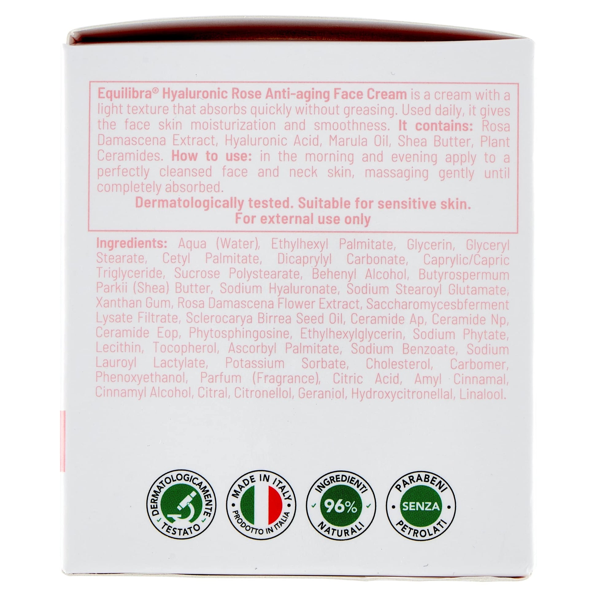 Equilibra Viso, Rosa Ialuronica Crema Viso Anti-aging a Base di Estratto di Rosa Damascena e Acido Ialuronico, Idratante e Levigante, Assorbimento Rapido, Non Unge, 50 ml