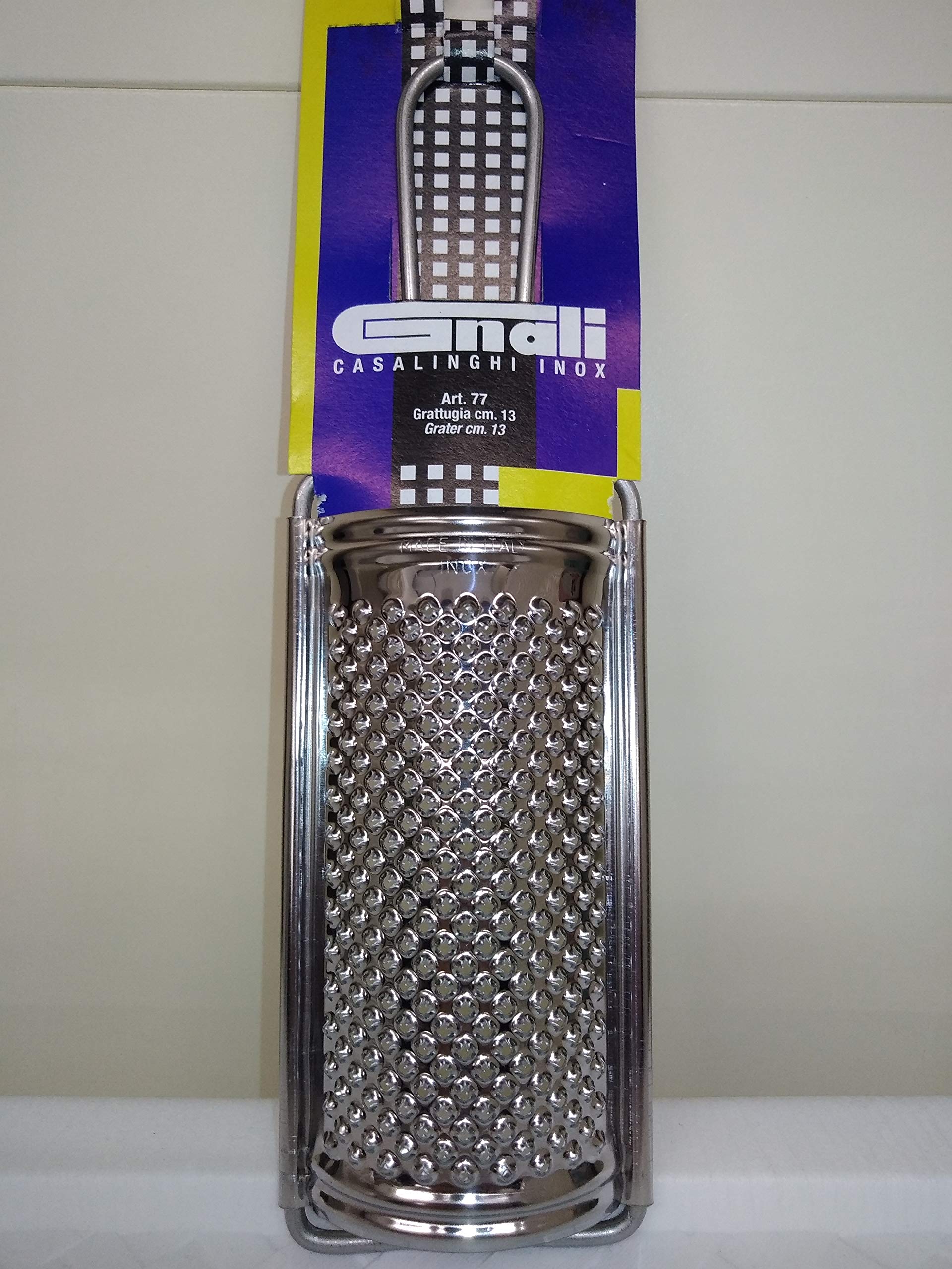 F.Lli Gnali Bacicio Grattugia in Acciaio Inossidabile 18/C di Altissima qualità. Finitura Lucida, con Pratico Appendibile.