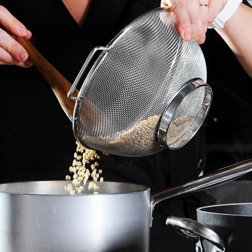 - PRATICO Ed Utile, questo colapasta in Acciaio Inossidabile é indispensabile in cucina grazie alla maglia fine in Acciaio Inossidabile, che ti permetterà di colare cereali, pasta, quinoa e verdure